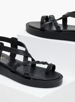 Εξοδος 🤩 Εξοδος 🛒 The Fashion Project Flatforms δερμάτινα TFP με Strass χιαστί λουράκια – Ταμπά 🎁 🤩