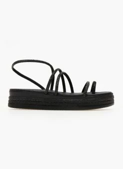 Πολύ καλή προσφορά 👏 Η καλύτερη συμφωνία 🧨 Flatforms δερμάτινα ESTIL με Strass λουράκια – Μαύρο 🌟 🛒