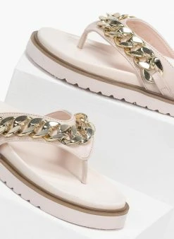 Best Pirce 🤩 Συμφωνίες 💯 The Fashion Project Slides με αλυσίδα και ανατομικό πάτο – Μπεζ 🌟 🌟