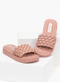 Flash Sale 🔥 ΧΟΝΔΡΙΚΟ ΕΜΠΟΡΙΟ ❤️ The Fashion Project Slides με πλεκτό σχέδιο στη φάσα – Ροζ 🔥 🧨
