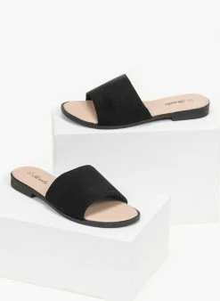 Τοπ 10 🎁 Εκπτωση 🔥 The Fashion Project Suede Slides με φαρδιά φάσα – Μαύρο 🥰 🔔