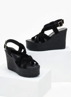 Best Pirce ❤️ Καλύτερες κριτικές για 👍 Πλατφόρμες δερμάτινες ESTIL με έλασμα – Μαύρο 🌟 ❤️
