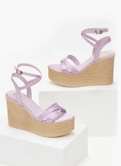 Best Pirce 😍 Το φθηνότερο 👍 The Fashion Project Πλατφόρμες σατέν TFP με χιαστί λουράκια – Λιλά ✨ 💯