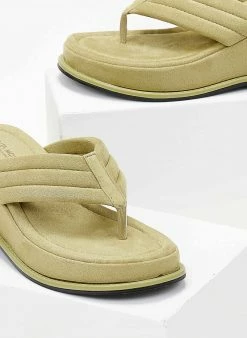 Flash Sale 👍 Καλύτερη πώληση 🎁 The Fashion Project Suede σαγιονάρες με καπιτονέ φάσες – Λαχανί 😉 🎉
