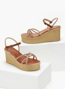 Πολύ καλή προσφορά ⌛ Flash Sale 💯 Πλατφόρμες δερμάτινες ESTIL με Strass λουράκια – Χαλκός 🥰 😉