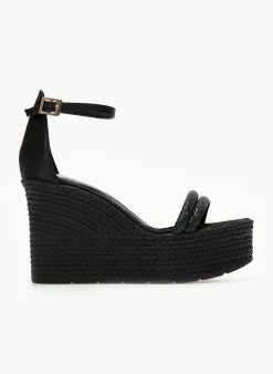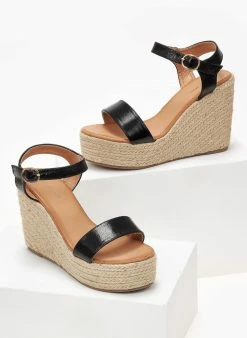 Ολοκαίνουργιο 💯 Καλύτερη πώληση 😍 The Fashion Project Πλατφόρμες πέδιλα με σχοίνινη σόλα – Μαύρο ⭐ 🧨