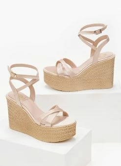 Πολύ καλή προσφορά 💯 Φτηνός 😀 The Fashion Project Πλατφόρμες σατέν TFP με χιαστί λουράκια – Nude ⭐ 🛒