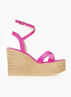 Ολοκαίνουργιο 👏 Εκπτωση 💯 The Fashion Project Πλατφόρμες σατέν TFP με χιαστί λουράκια – Φούξια 🧨 🔥