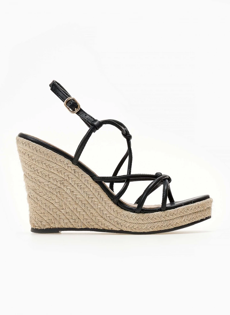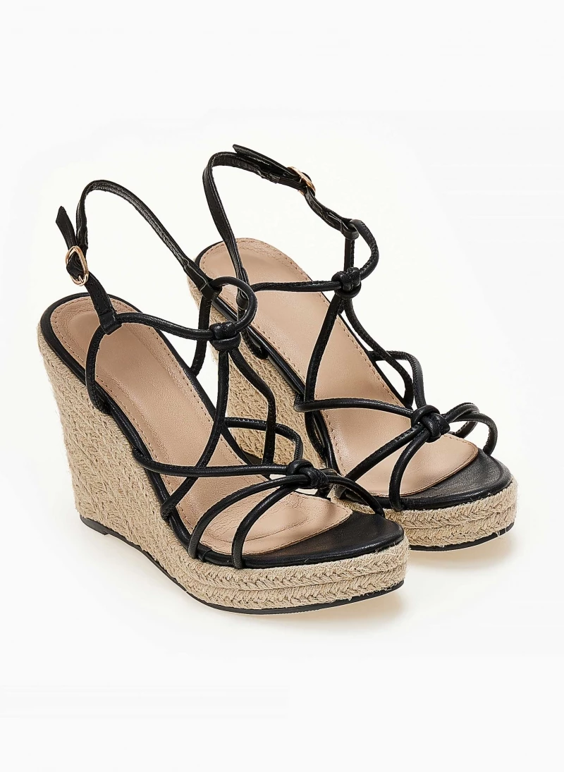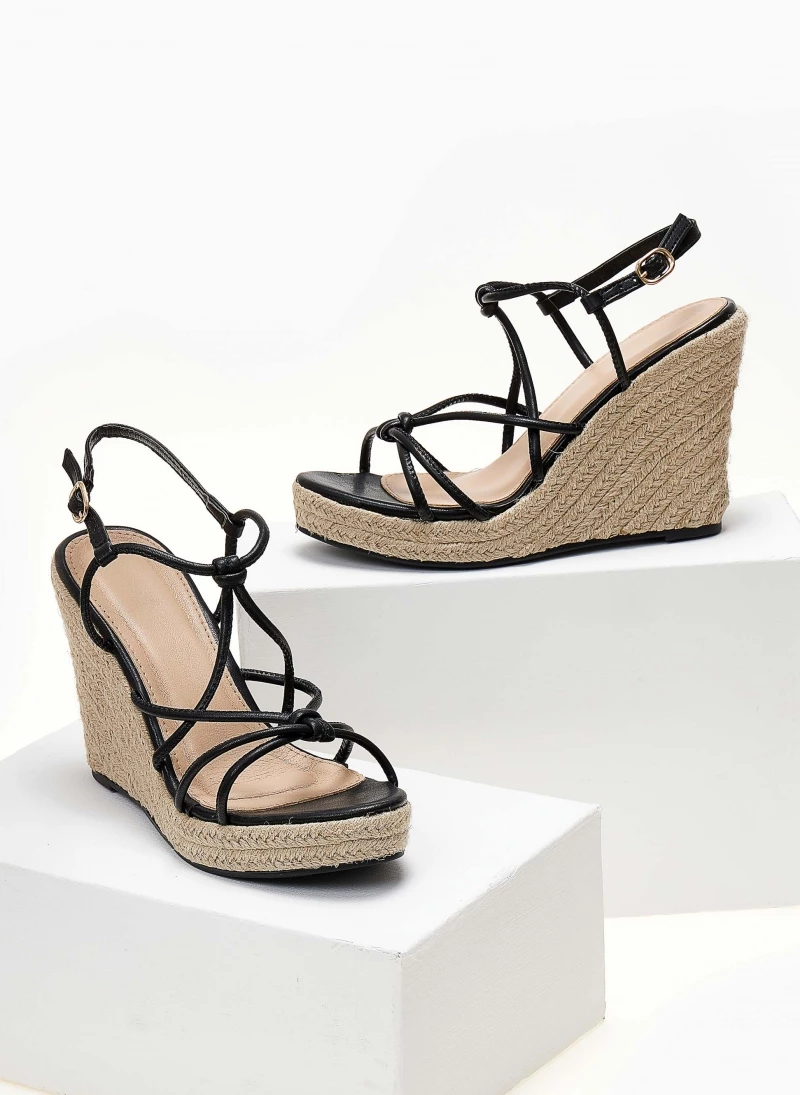 Πλατφόρμες με λεπτά λουράκια και σχέδιο κόμπους. Δένουν με λουράκι στο πλάι. Η σόλα είναι ντυμένη με σχοινί.