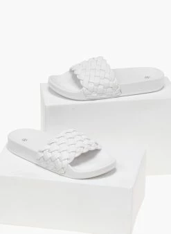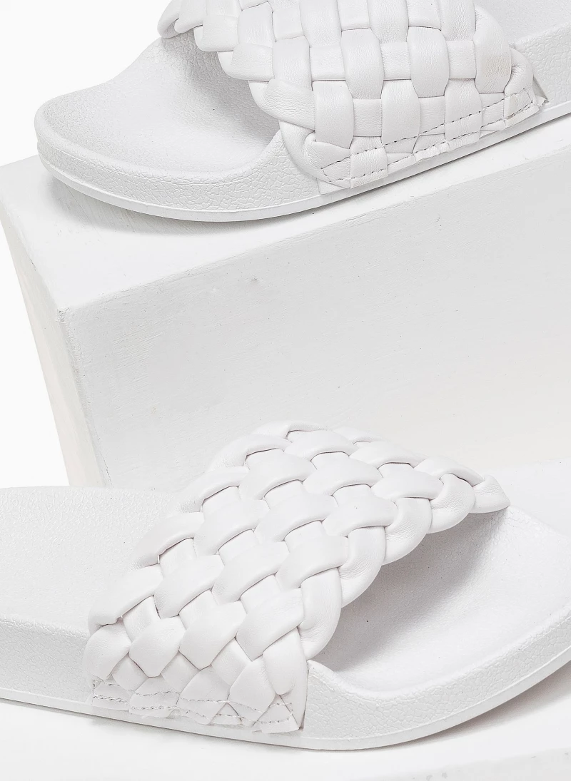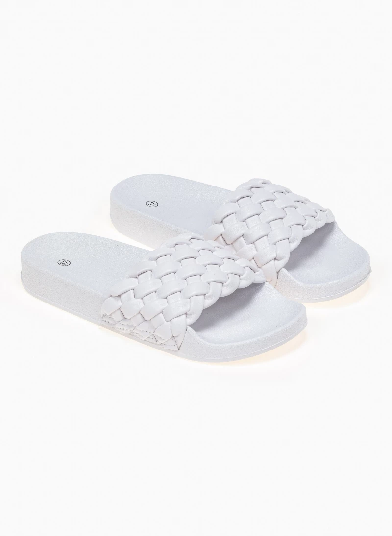 Καλύτερη πώληση 🌟 Συμφωνίες 💯 The Fashion Project Slides με κοκάλινους κρίκους – Λευκό 🔥 😉