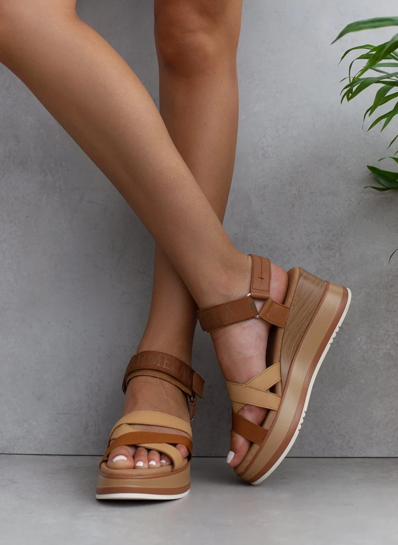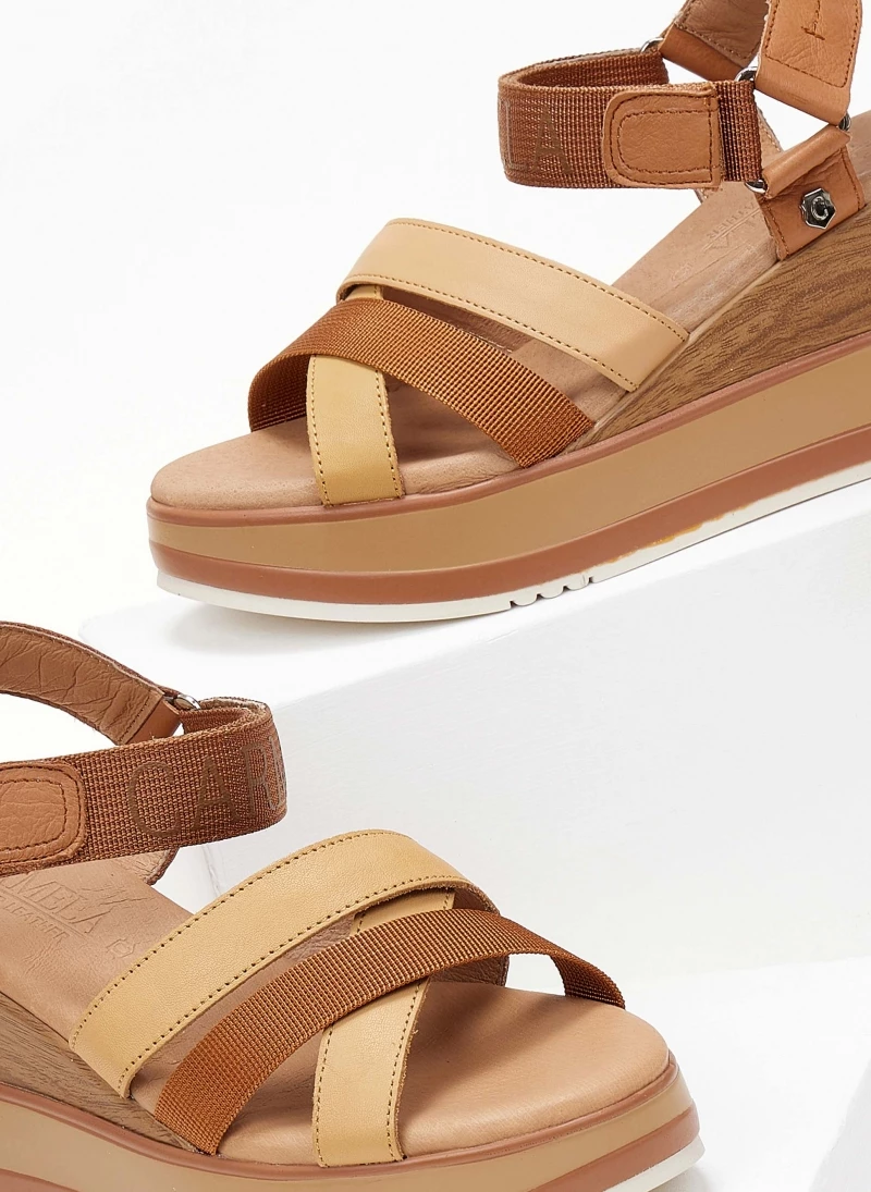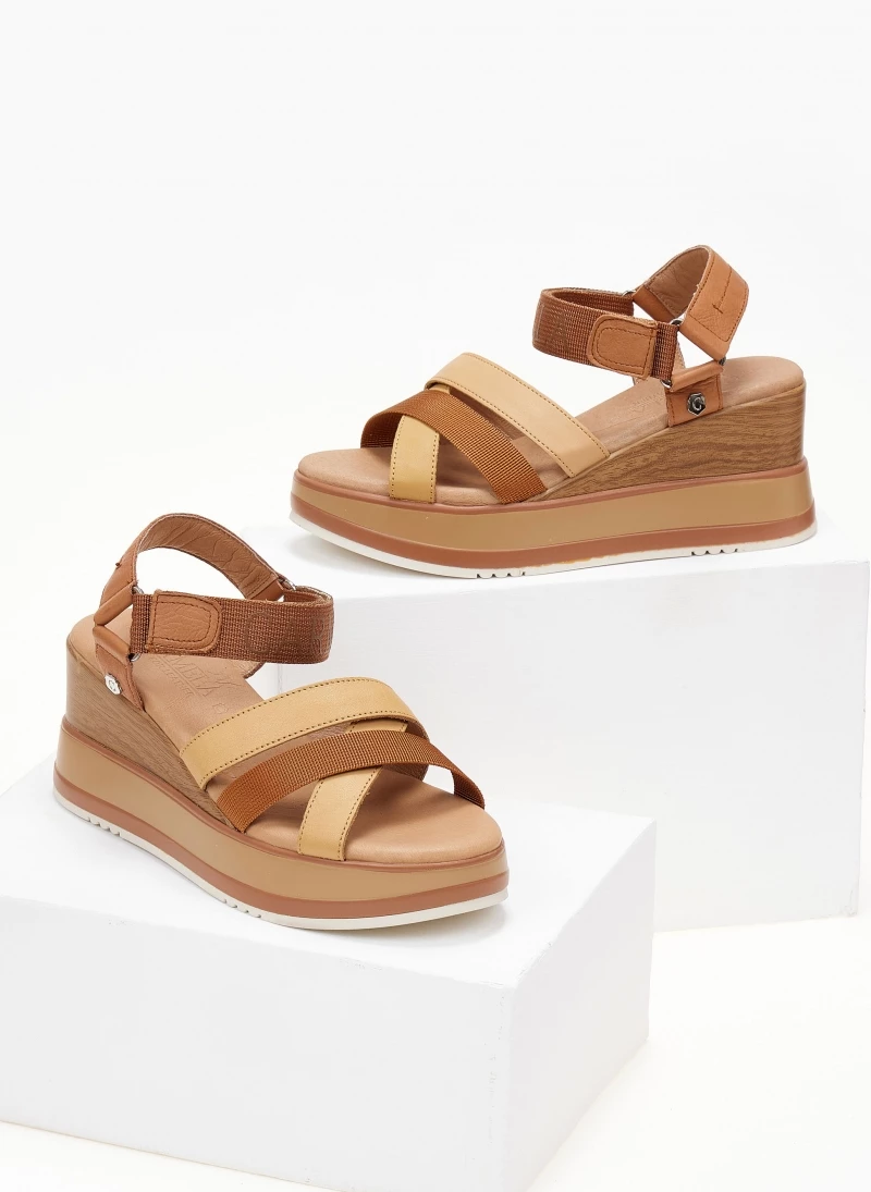 Πλατφόρμες με δερμάτινα χιαστί λουράκια και υφασμάτινο velcro αυτοκόλλητο. Διαθέτει δερμάτινο πάτο με ενίσχυση. Η σόλα είναι μαλακή.