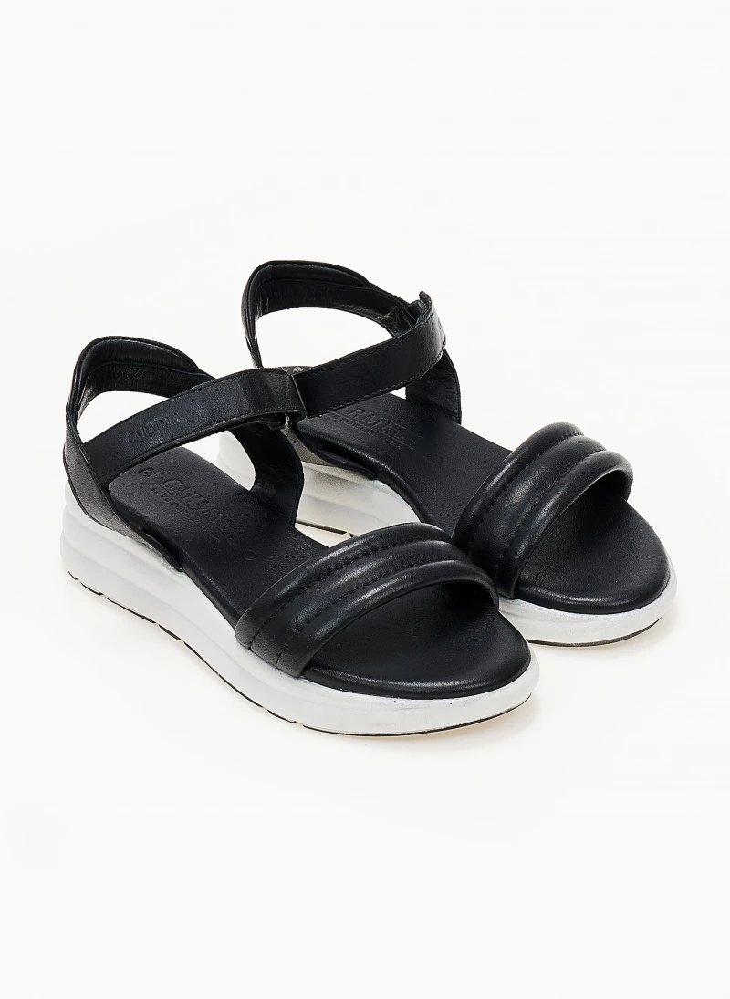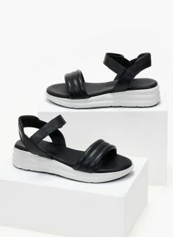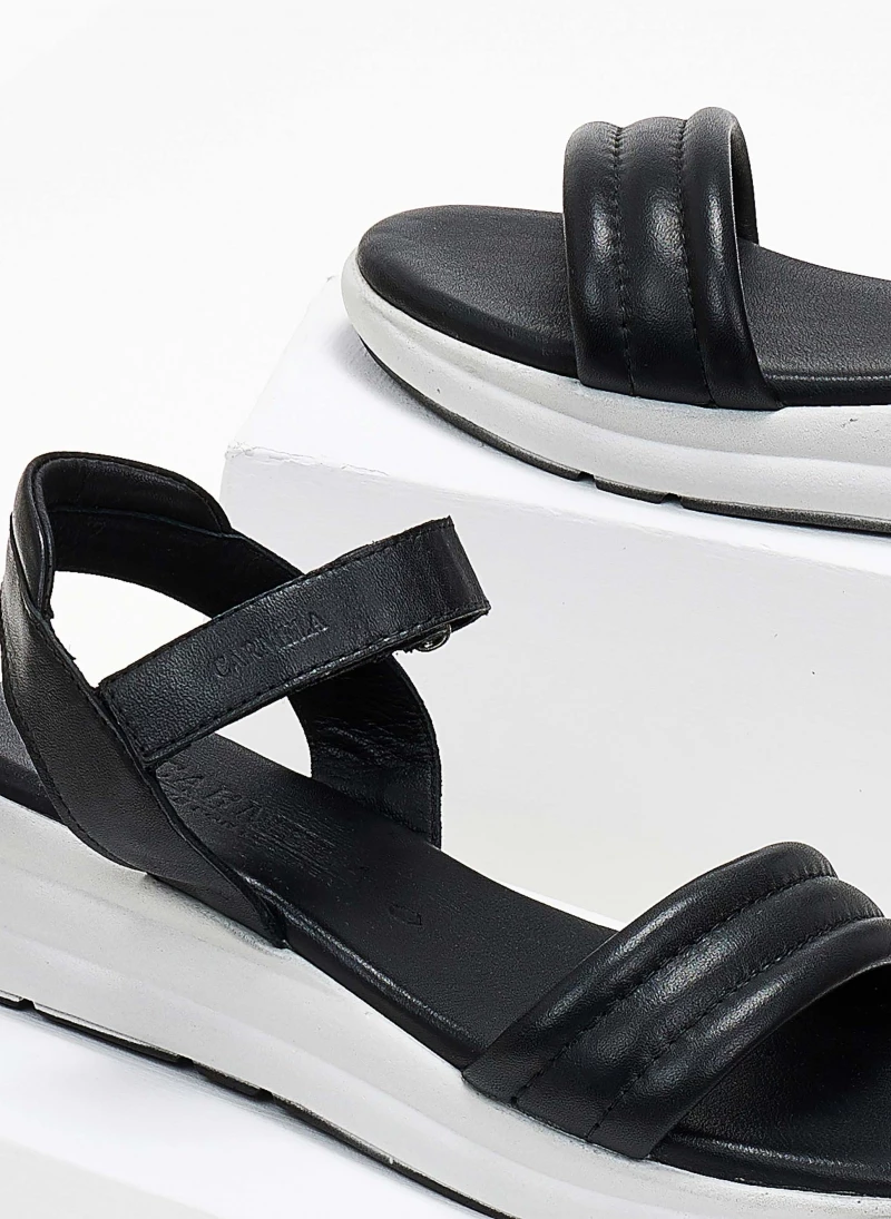 Σανδάλια δερμάτινα με αθλητική σόλα. Έχουν φάσα με εξωτερικές ραφές. ΚΛείνουν με λουράκι velcro στο ύψος του κουτεπιέ. Δερμάτινος πάτος με ενίσχυση.