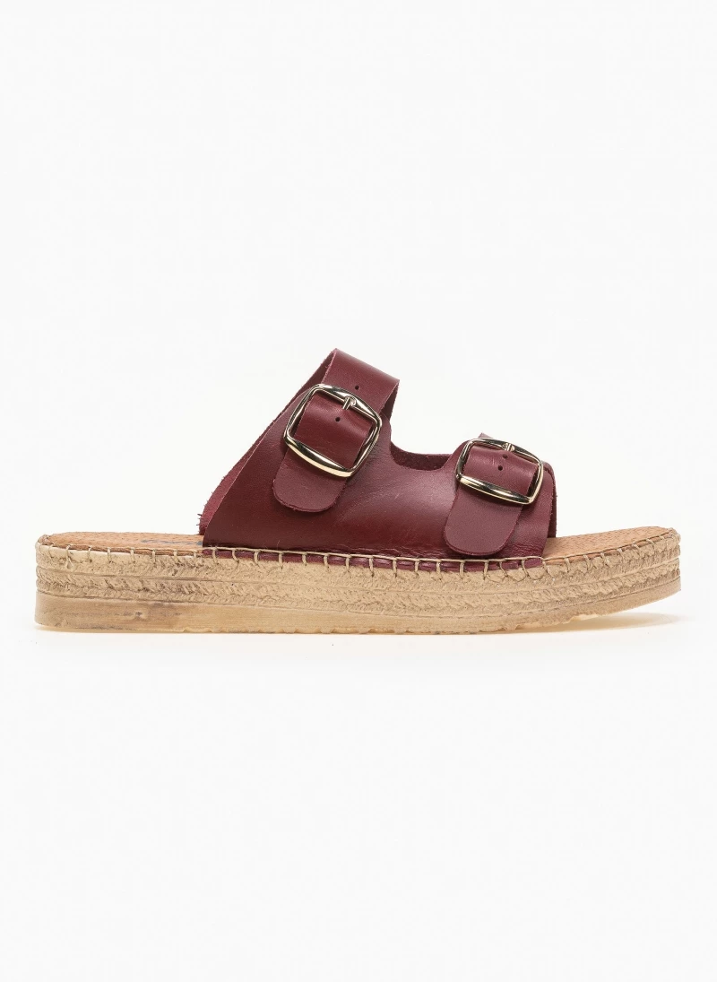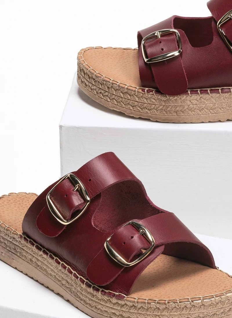 Estil δερμάτινα flatforms με δύο φάσες και μεταλλικές αγκράφες.Οπάτος είναι δερμάτινος με ενίσχυση.Ελληνικής κατασκευής,χειροποίητα.