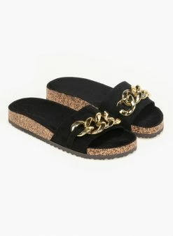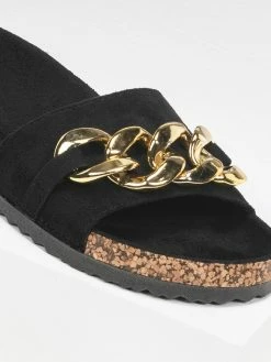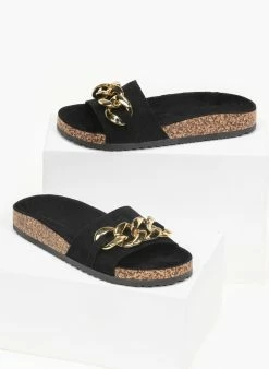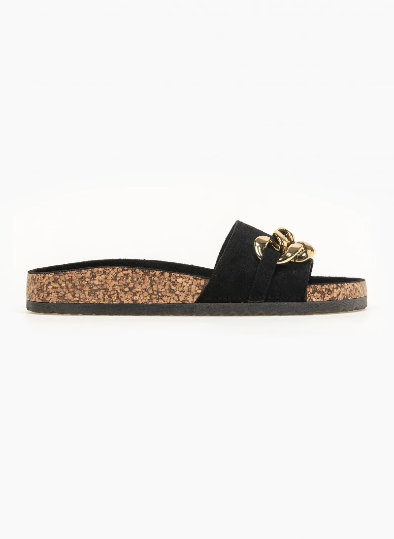 Suede slides με ανατομικό πάτο.Έχουν φαρδιά φάσα με αλυσίδα.