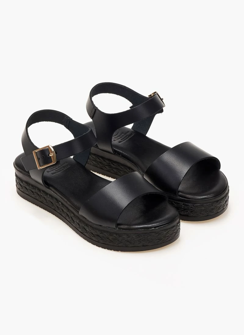 Flatform πέδιλα TFP με δέσιμο στο πλάι. Δερμάτινος πάτος με ενίσχυση. Ελληνικής κατασκευής.