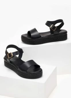Εξοδος 🤩 Εξοδος 🛒 The Fashion Project Flatforms δερμάτινα TFP με Strass χιαστί λουράκια – Ταμπά 🎁 🤩