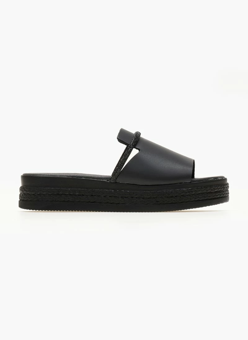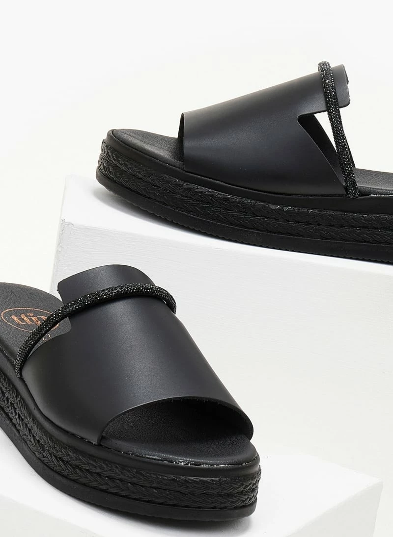 Flatforms δερμάτινα TFP με φαρδιά χωστή φάσα και strass λουράκι. Δερμάτινος πάτος με ενίσχυση. Ελληνικής κατασκευής.