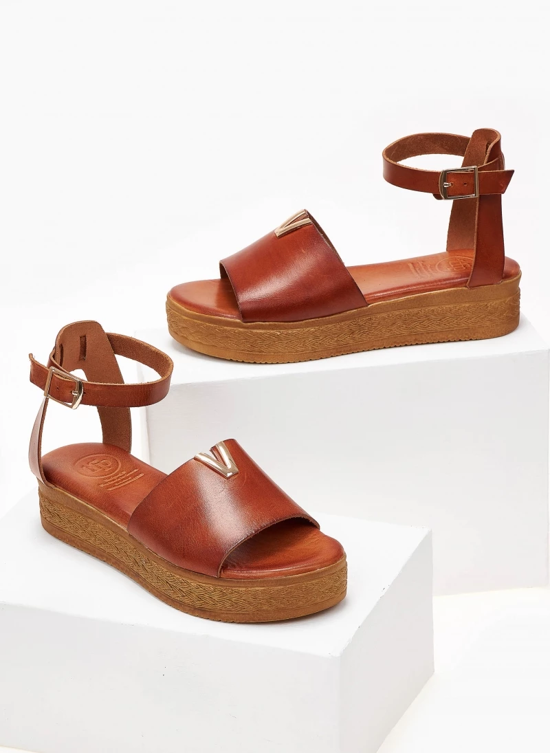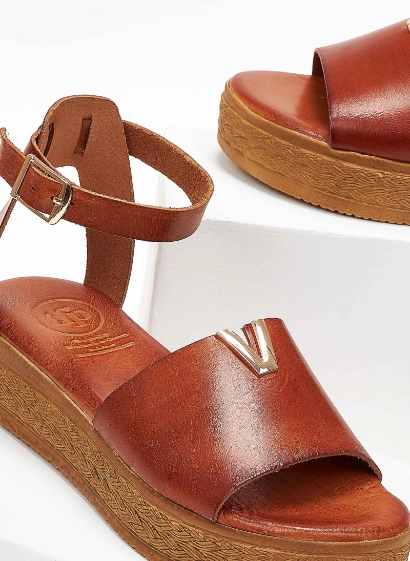 TFP Flatforms δερμάτινα με φαρδιά φάσα.Έχουν άνοιγμα με μεταλλικό στοιχείο στο ύψος του κουτεπιέ.Δένουν με μπαρέτα στο ύψος του αστραγάλου.Δερμάτινος πάτος με ανοίγματα.Ελληνικής κατασκευής.