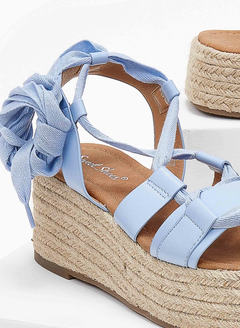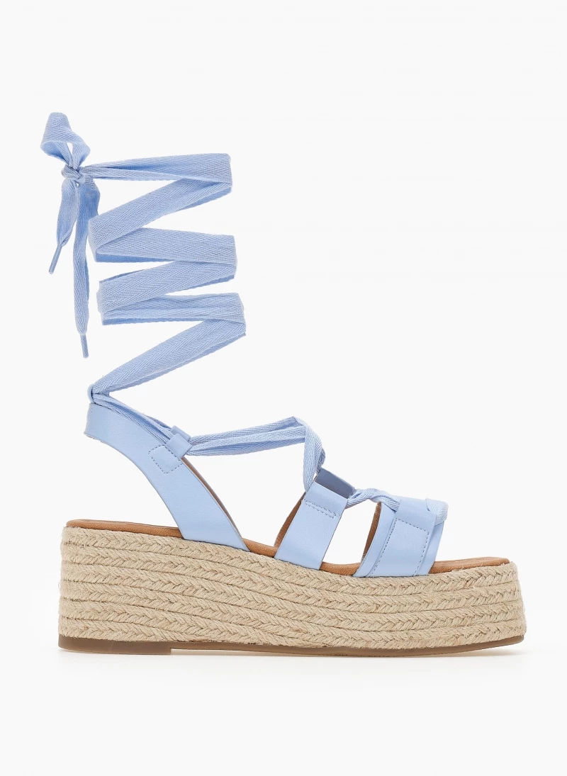 Flatforms με σχοίνινη σόλα. Δένουν με κορδόνια σττη γάμπα. Έχουν καρέ γραμμή.