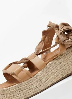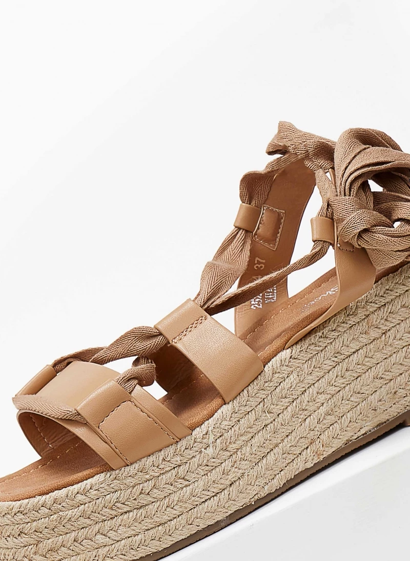 Flatforms με σχοίνινη σόλα. Δένουν με κορδόνια σττη γάμπα. Έχουν καρέ γραμμή.