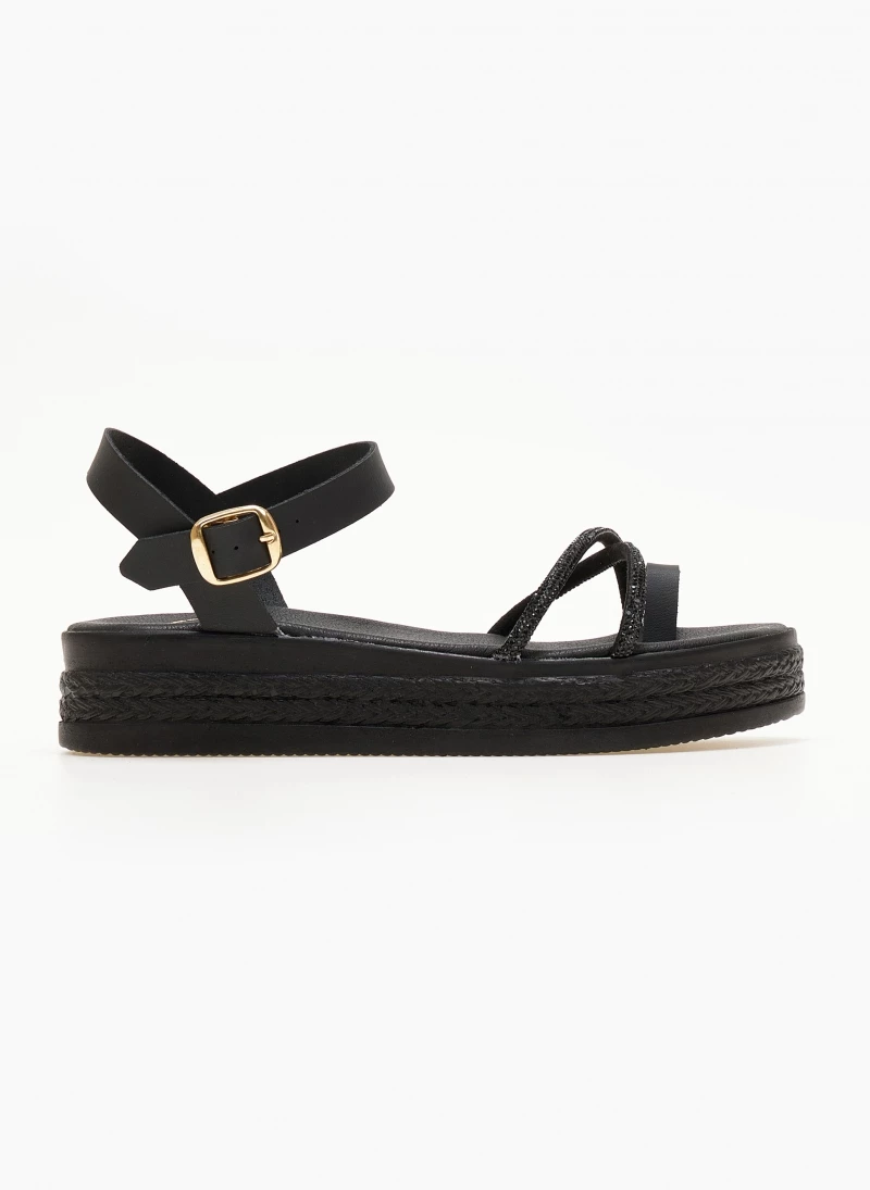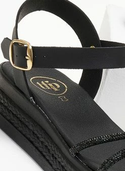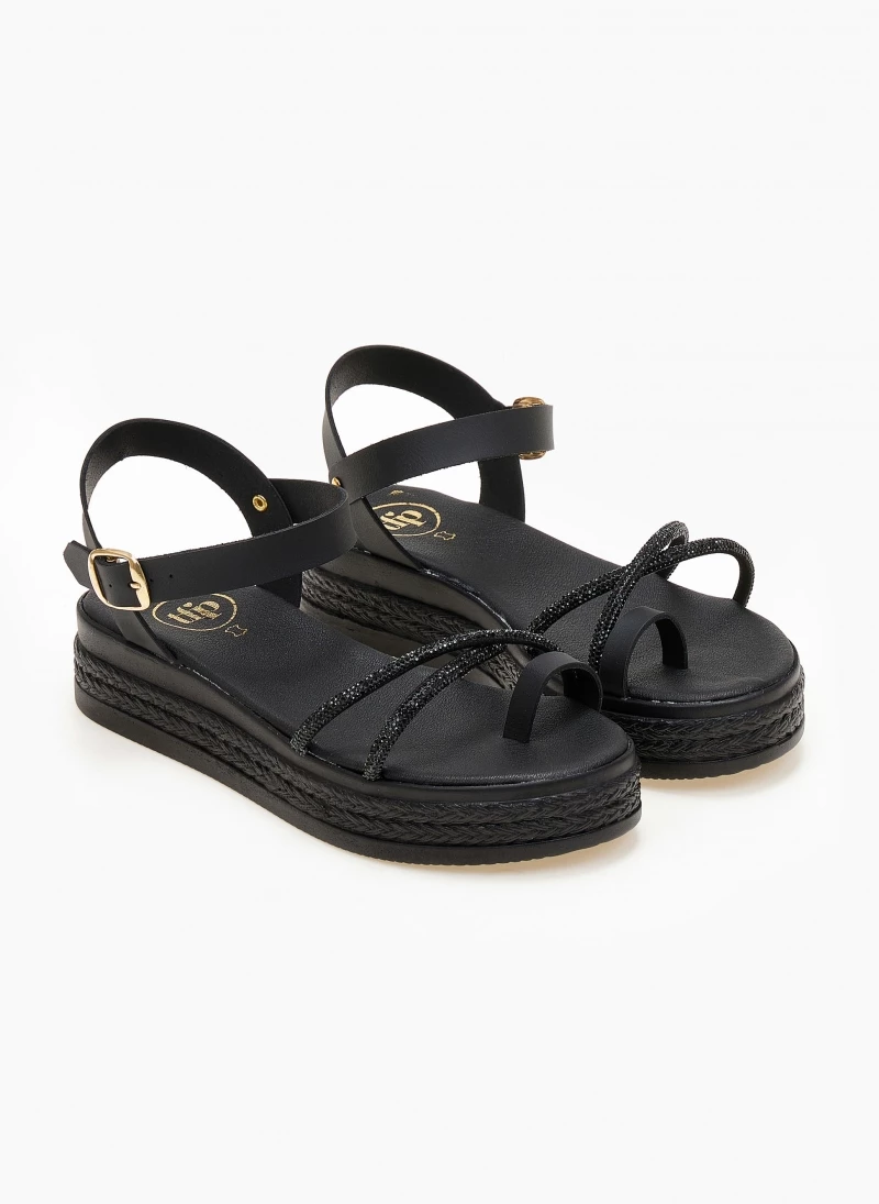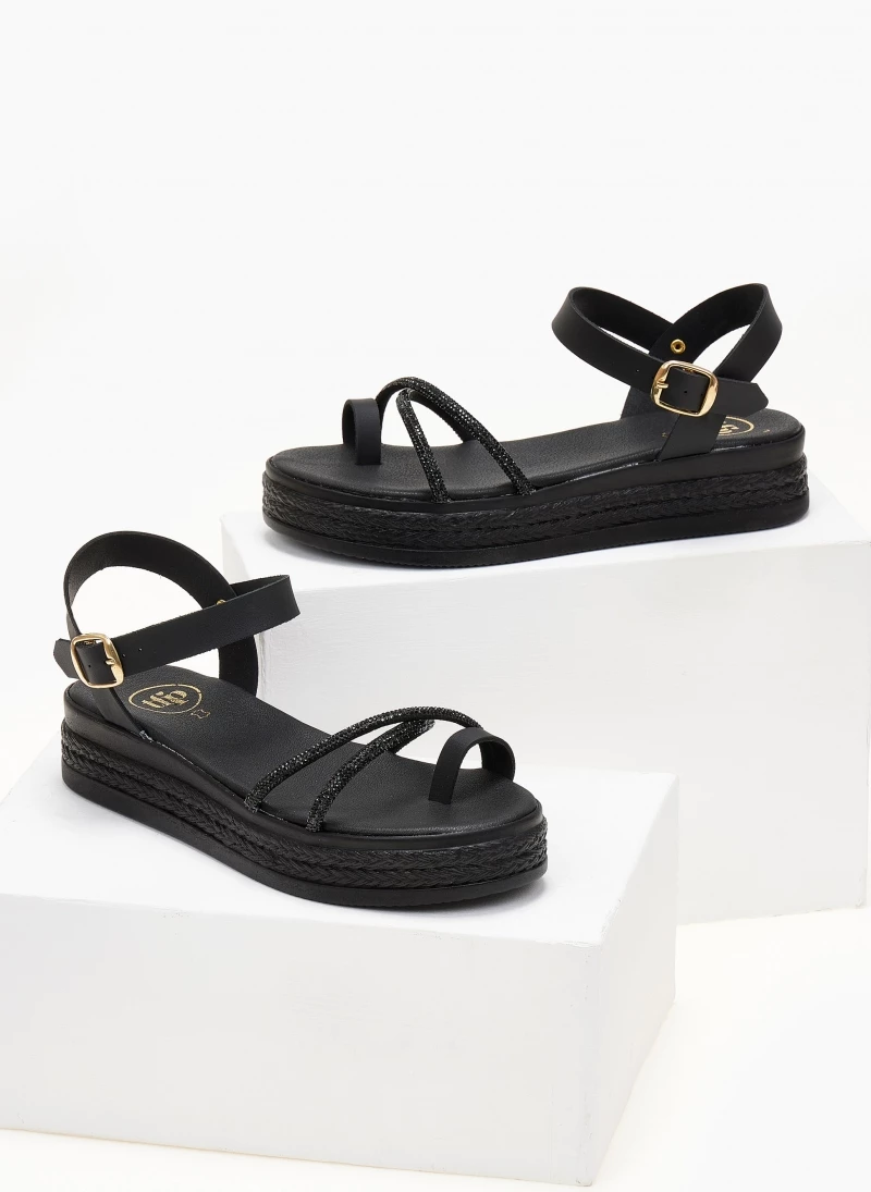 Flatforms δερμάτινα TFP με strass χιαστί λουράκια. Διαθέτει λουράκι στο ύψος του αστραγάλου που δένει με κούμπωμα. Δερμάτινος πάτος με ενίσχυση. Ελληνικής κατασκευής.