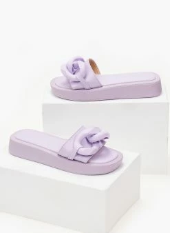 Συμφωνίες 🔥 Νέος 🧨 The Fashion Project Slides με χιαστί φάσες – Λιλά 🎁 🛒