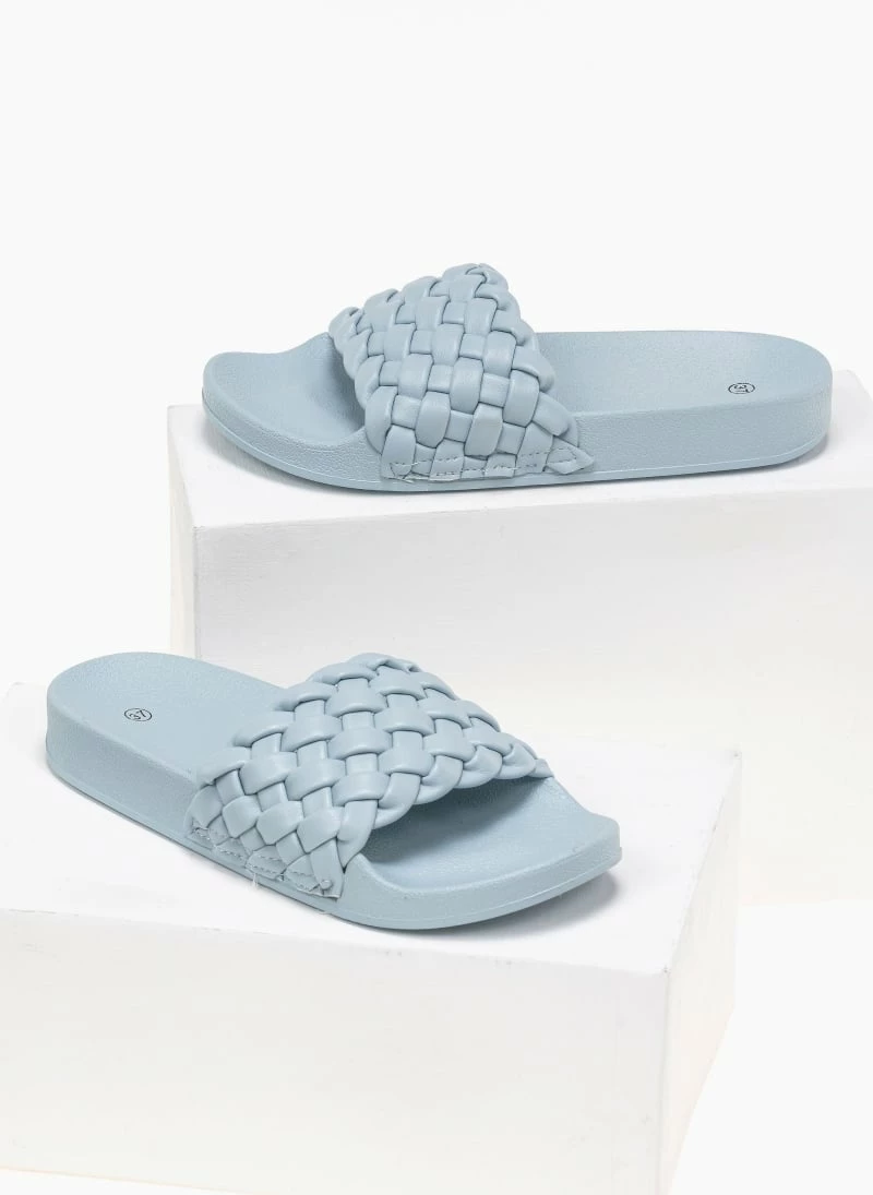 Νέος ⌛ Καλύτερες κριτικές για 🌟 The Fashion Project Slides με πλεκτό σχέδιο στη φάσα – Γαλάζιο 🎉 🔥
