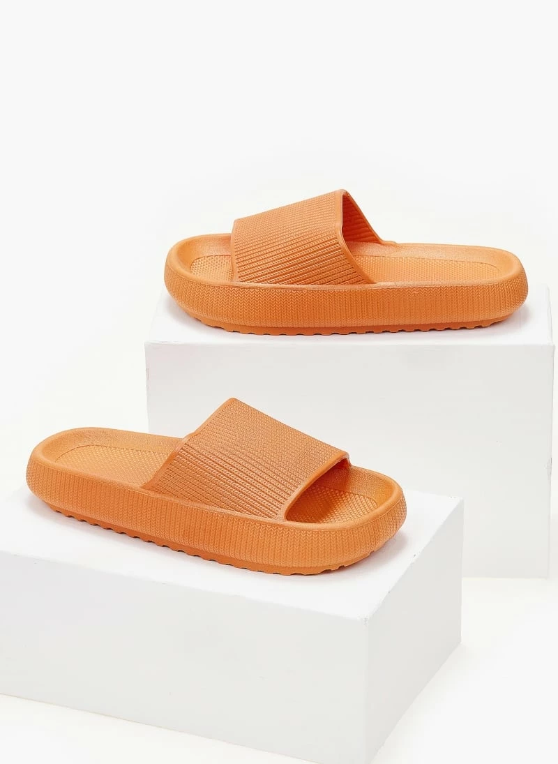 Slides με φαρδιά φάσα και μικρό άνοιγμα στο πλάι. Μαλακή σόλα. Ανατομικό σχήμα στον πάτο.