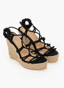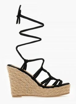 Suede lace up πλατφόρμες με λεπτά πλεγμένα λουράκια.Δένουν με κορδόνια στη γάμπα.Η σόλα είναι ντυμένη με σχοινί.