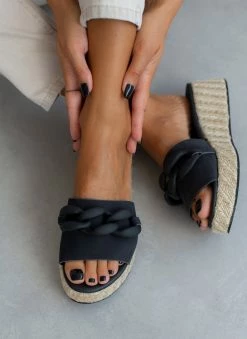 Εξοδος 🤩 Εξοδος 🛒 The Fashion Project Flatforms δερμάτινα TFP με Strass χιαστί λουράκια – Ταμπά 🎁 🤩