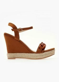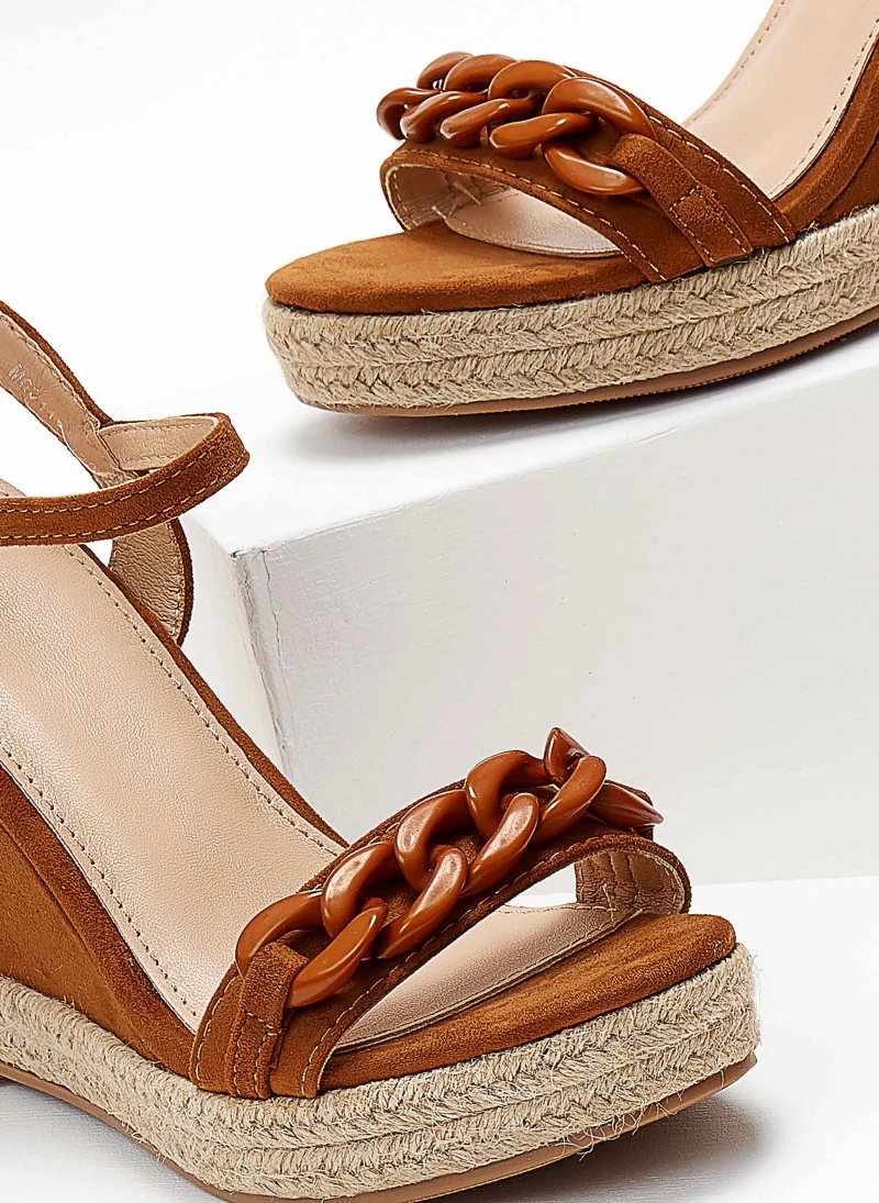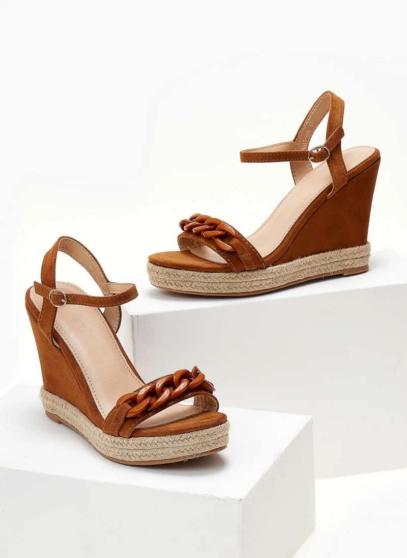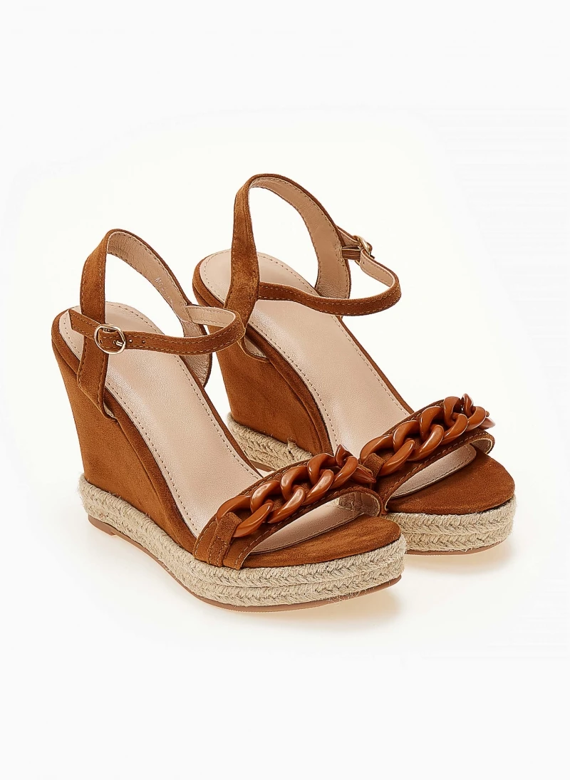 Πλατφόρμες suede με κοκάλινη αλυσίδα. Έχουν λεπτομέρεια σχοινί στη σόλα. Δέβουν με μπαρέτα στο ύψος του κουτεπιέ.