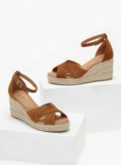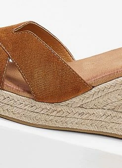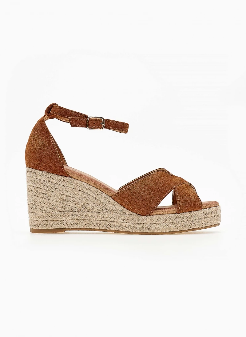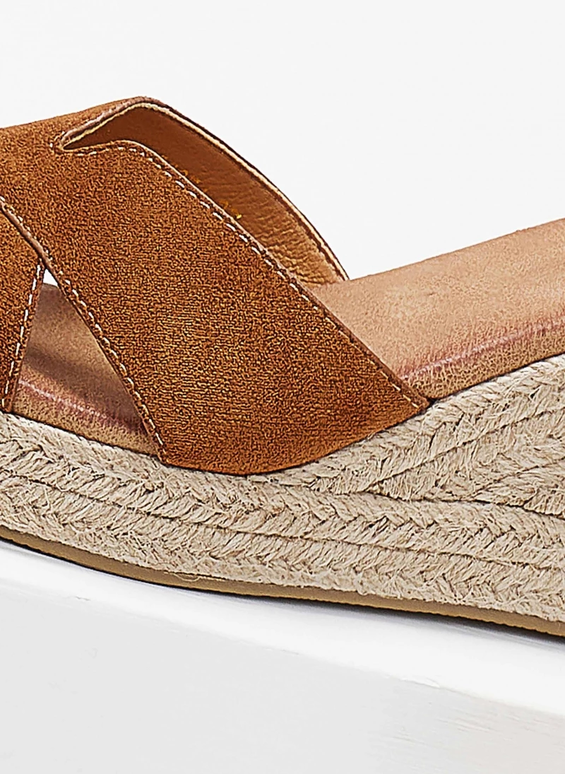 Πλατφόρμες suede με σχοίνινη σόλα. Έχουν χιαστί φάσες με μικρό άνοιγμα. Η φτέρνα είναι κλειστή και δένουν με μπαρέτα στο ύψος του αστραγάλου. Μαλακός πάτος με ενίσχυση.