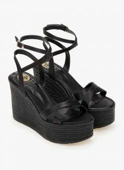 Προώθηση 🌟 Best Pirce 🧨 The Fashion Project Πλατφόρμες σατέν με ψάθα στη σόλα – Μαύρο ⌛ ✨