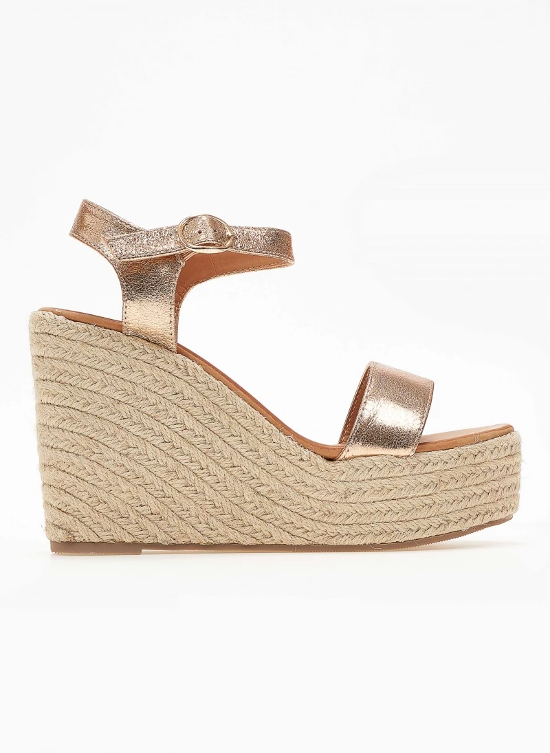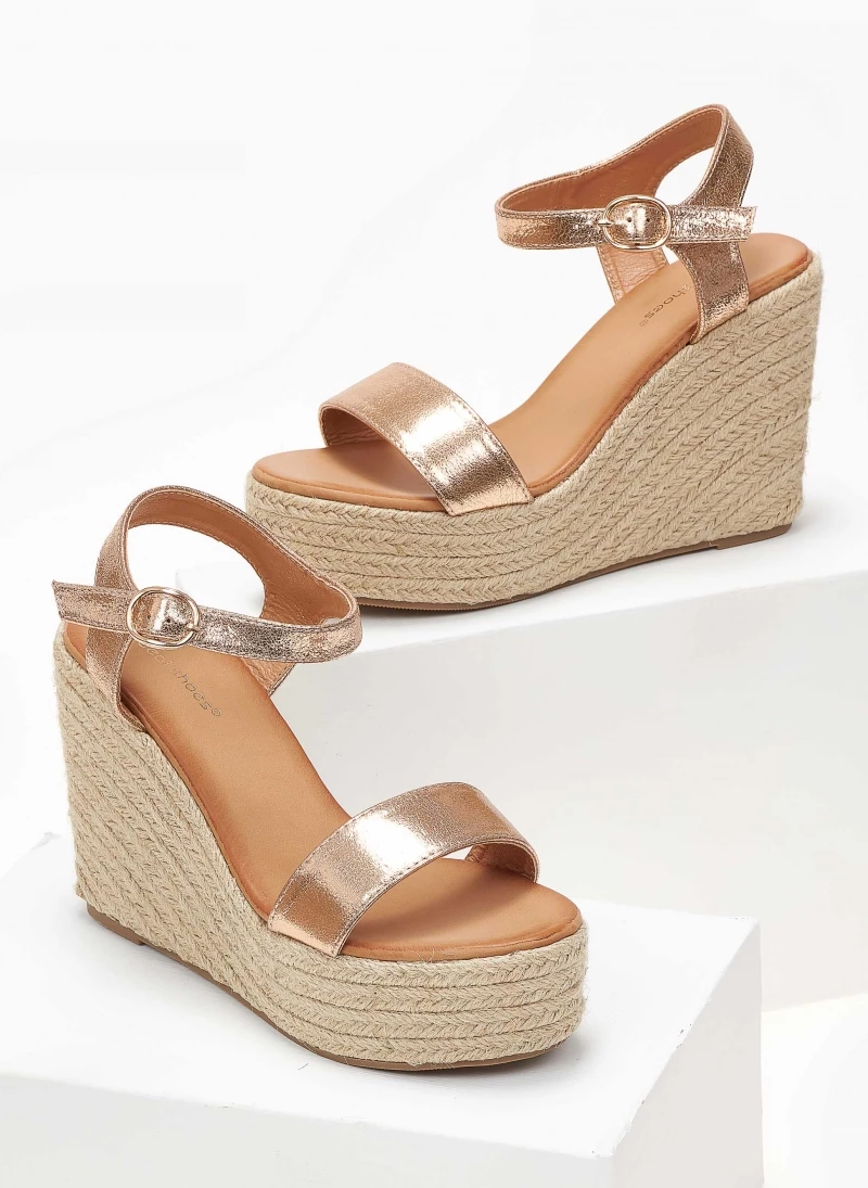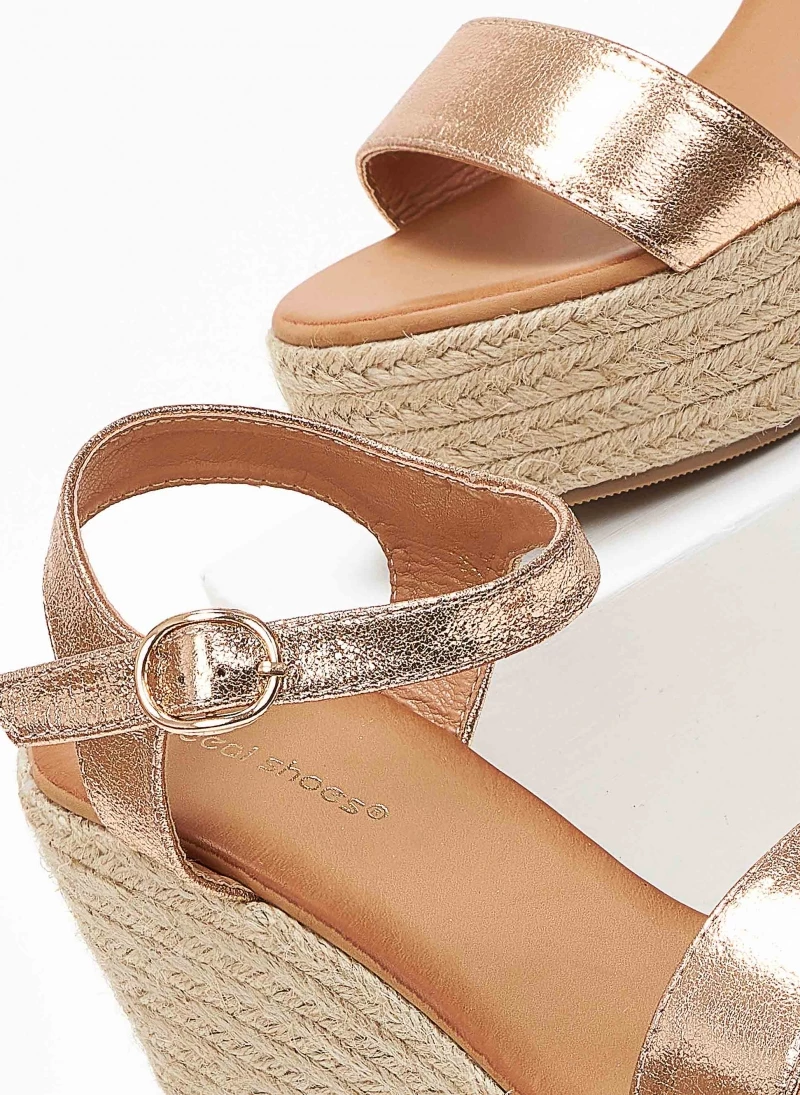Πέδιλα πλατφόρμες με ψηλή σχοίνινη σόλα.Δένουν στο πλάι με λουράκι.