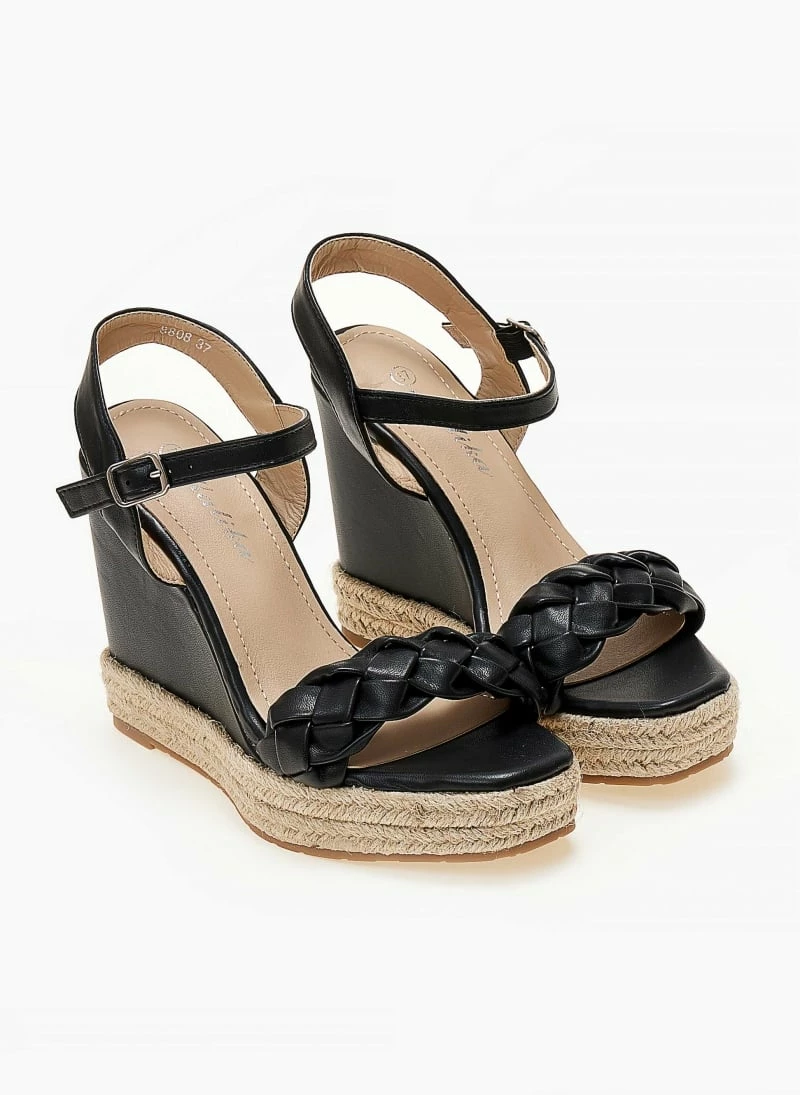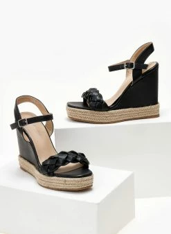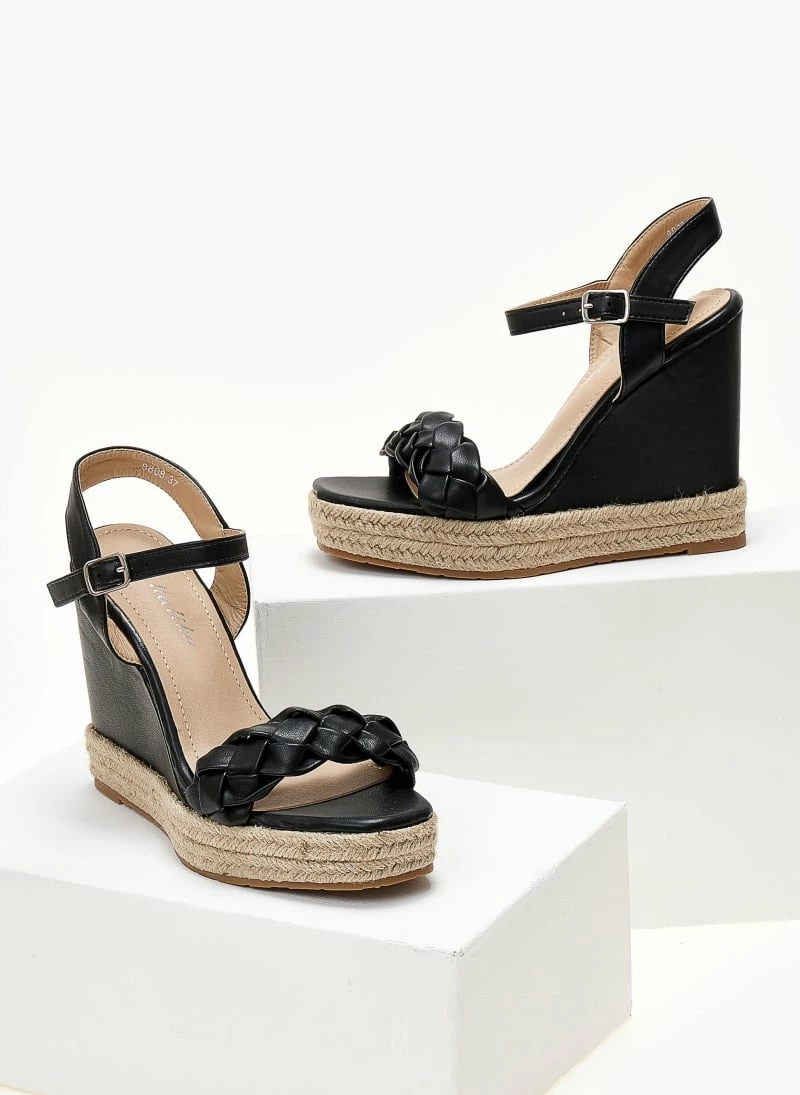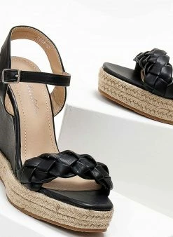 Προώθηση 🌟 Best Pirce 🧨 The Fashion Project Πλατφόρμες σατέν με ψάθα στη σόλα – Μαύρο ⌛ ✨