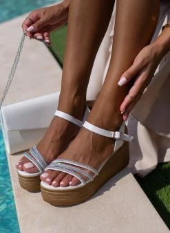 Καλύτερη πώληση 🔔 Η καλύτερη συμφωνία 👍 Πλατφόρμες δερμάτινες ESTIL με Strass – Λευκό 🎉 🤩