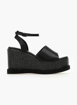 Προώθηση 🌟 Best Pirce 🧨 The Fashion Project Πλατφόρμες σατέν με ψάθα στη σόλα – Μαύρο ⌛ ✨