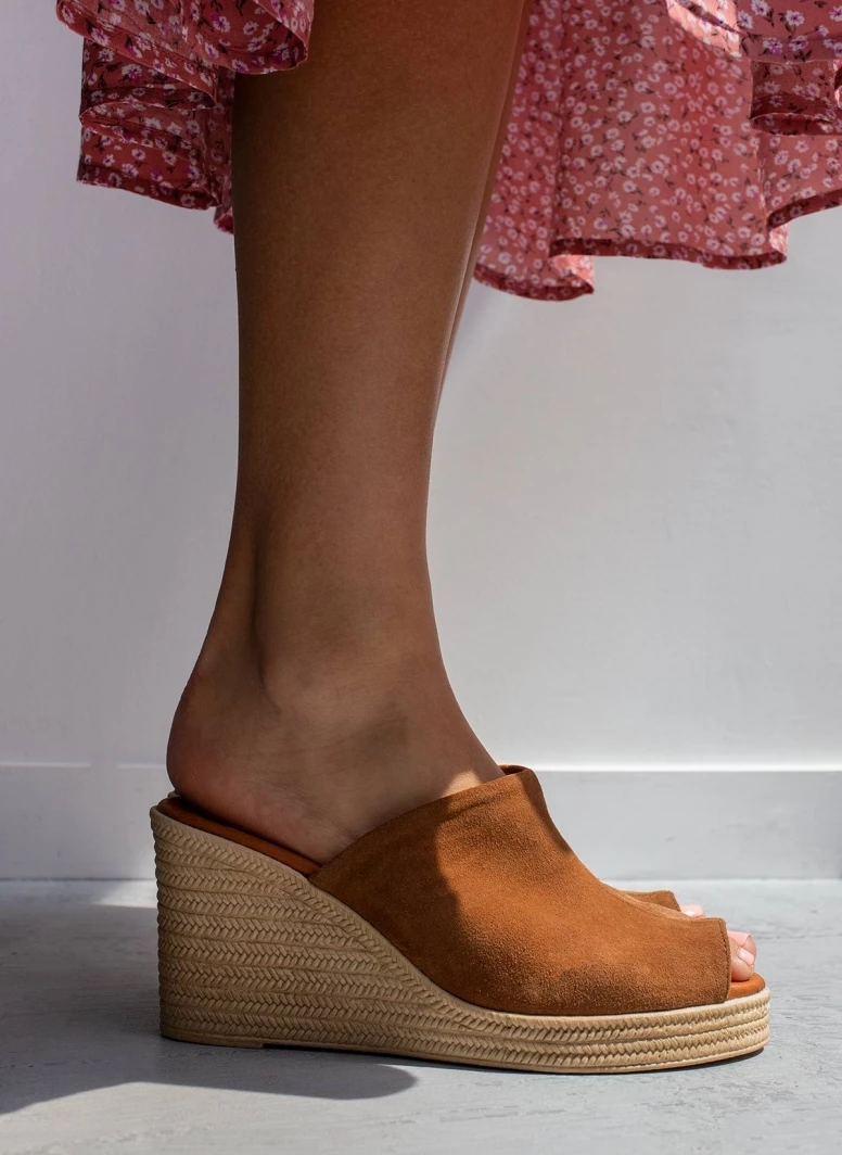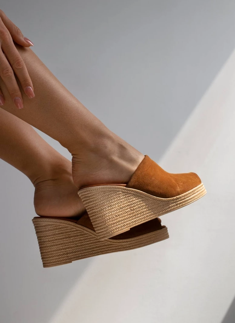 Πλατφόρμες Estil από καστόρι δέρμα. Έχουν φαρδιά χωστή φάσα. Δερμάτινος πάτος με ενίσχυση. Ελληνικής κατασκευής.