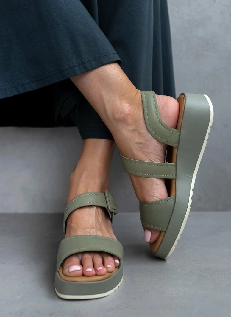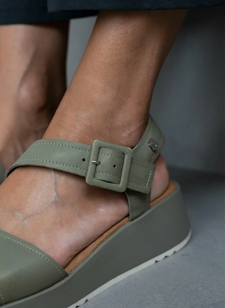 CARMELA Δερμάτινα καρέ πέδιλα με κούμπωμα στο πλάι.Έχουν μαλακό δερμάτινο πάτο με ενίσχυση.