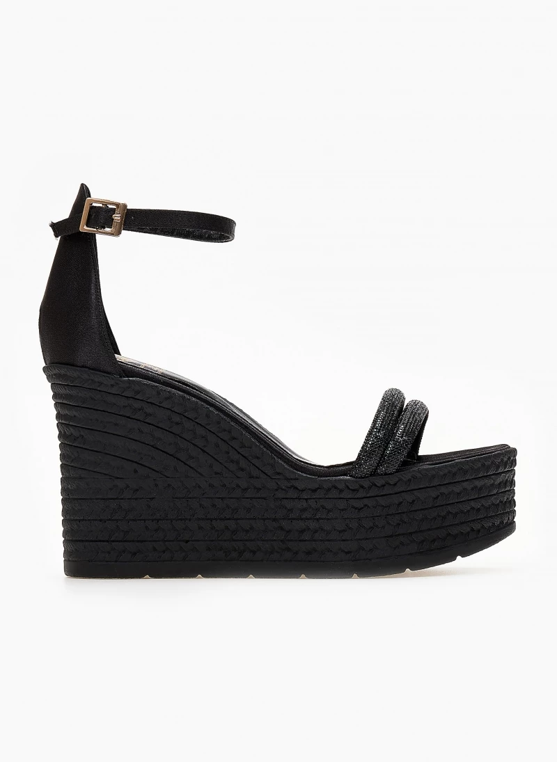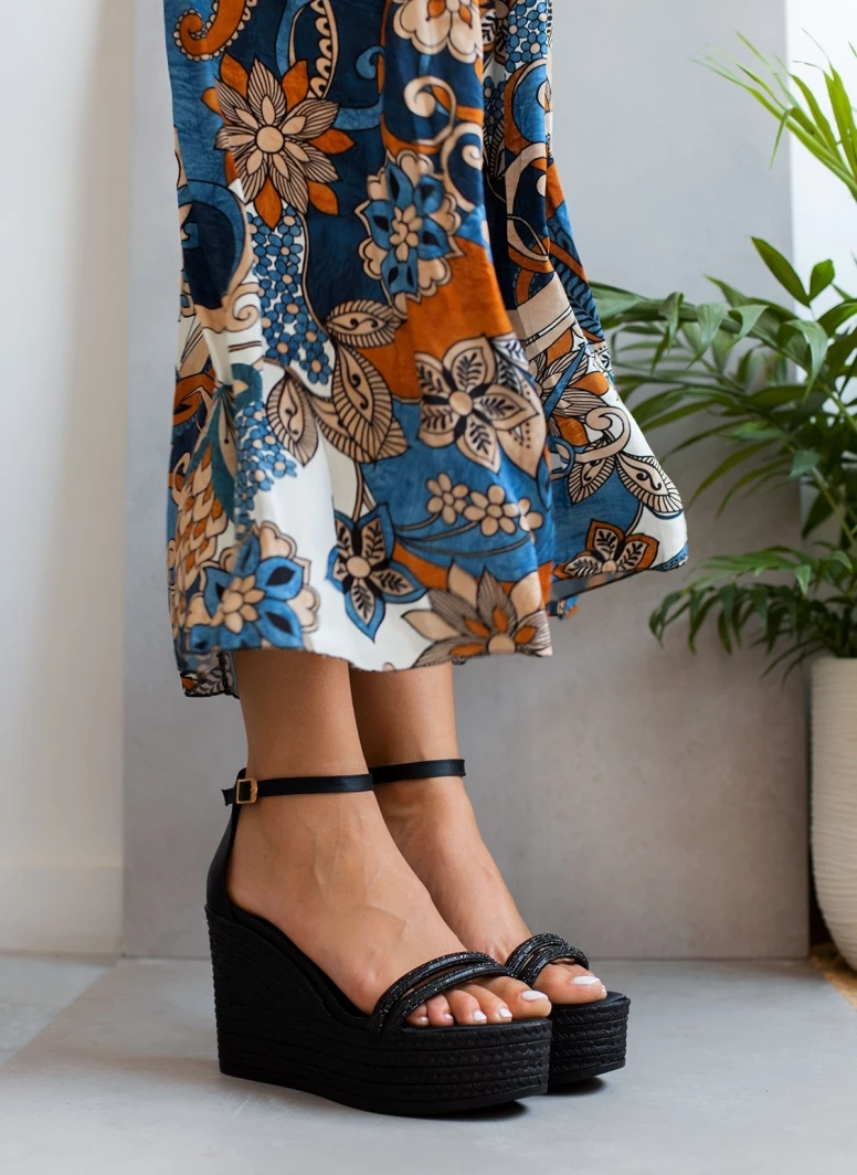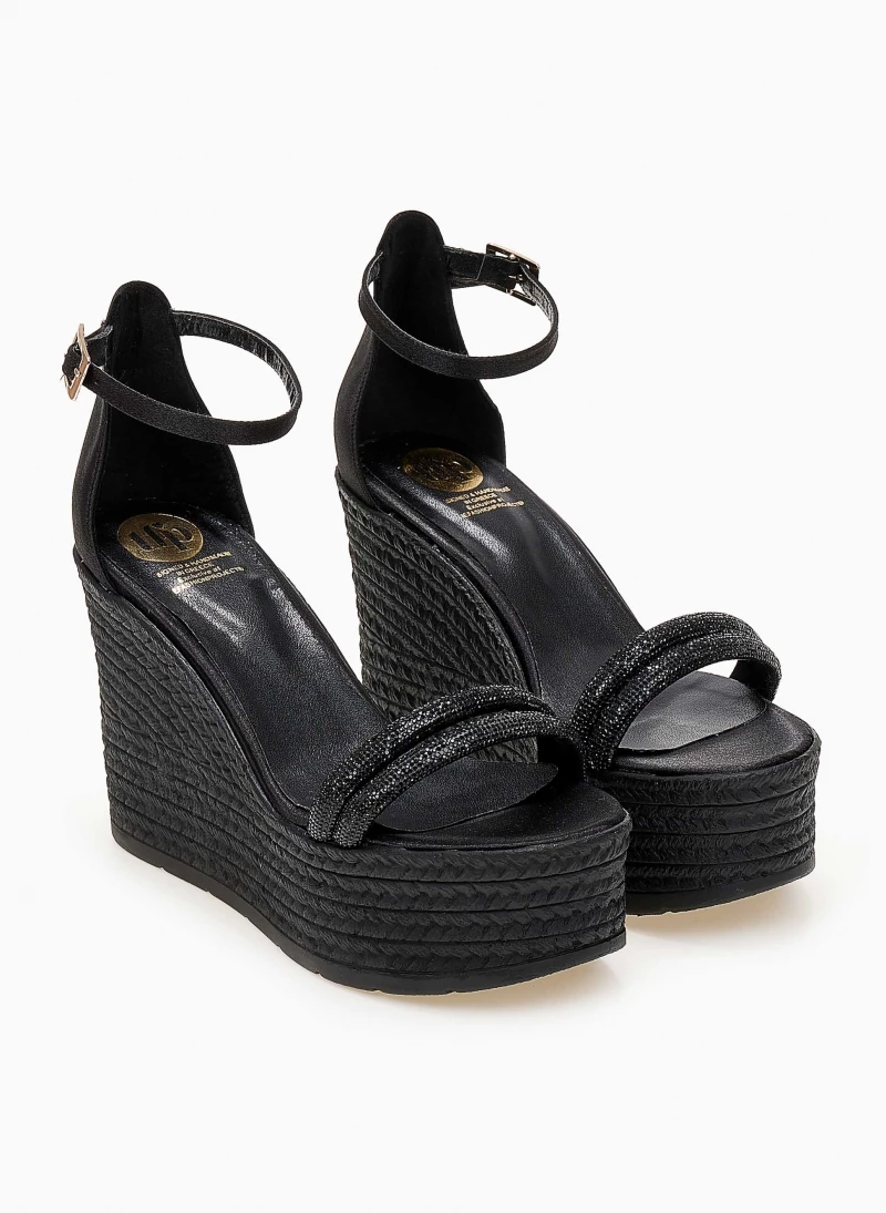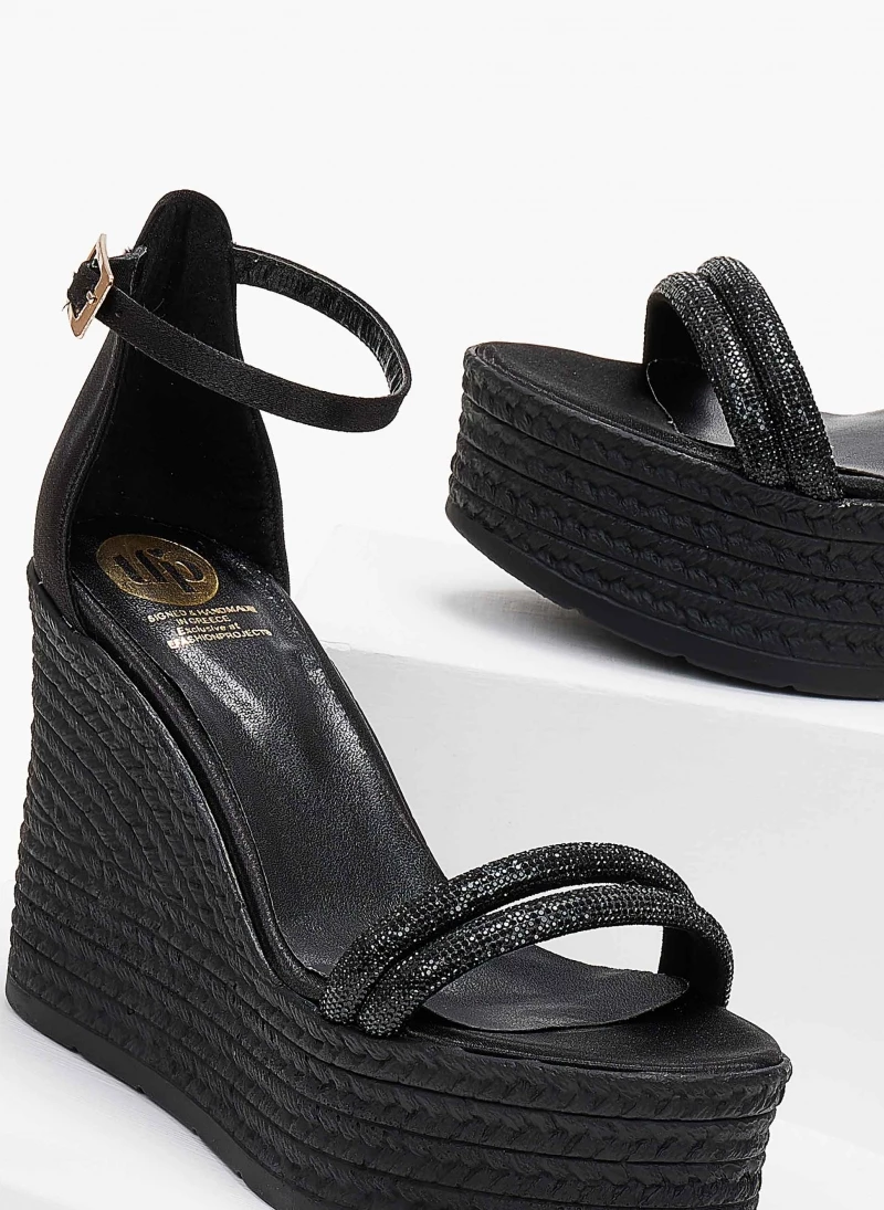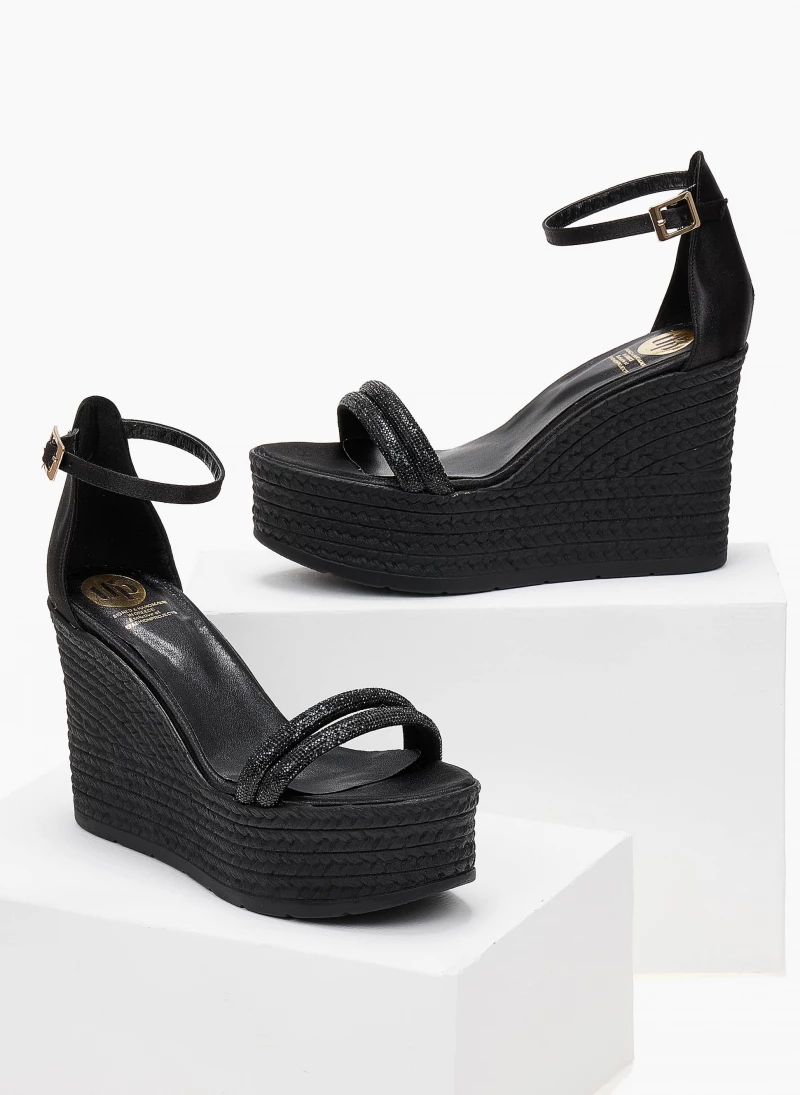 Πλατφόρμες πέδιλα TFP με διπλή σειρά strass. Έχουν κλειστή φτέρνα.Δένουν με μπαρέτα σο ύψος του αστραγάλου. Ελληνικής κατασκευής.