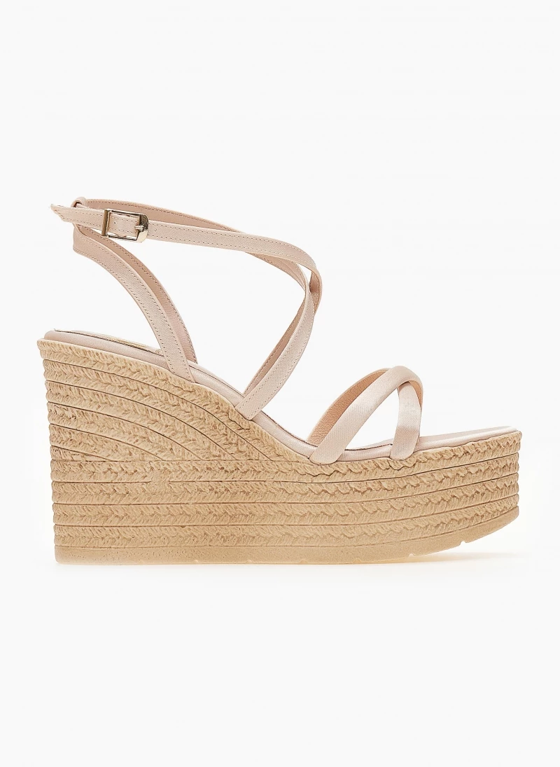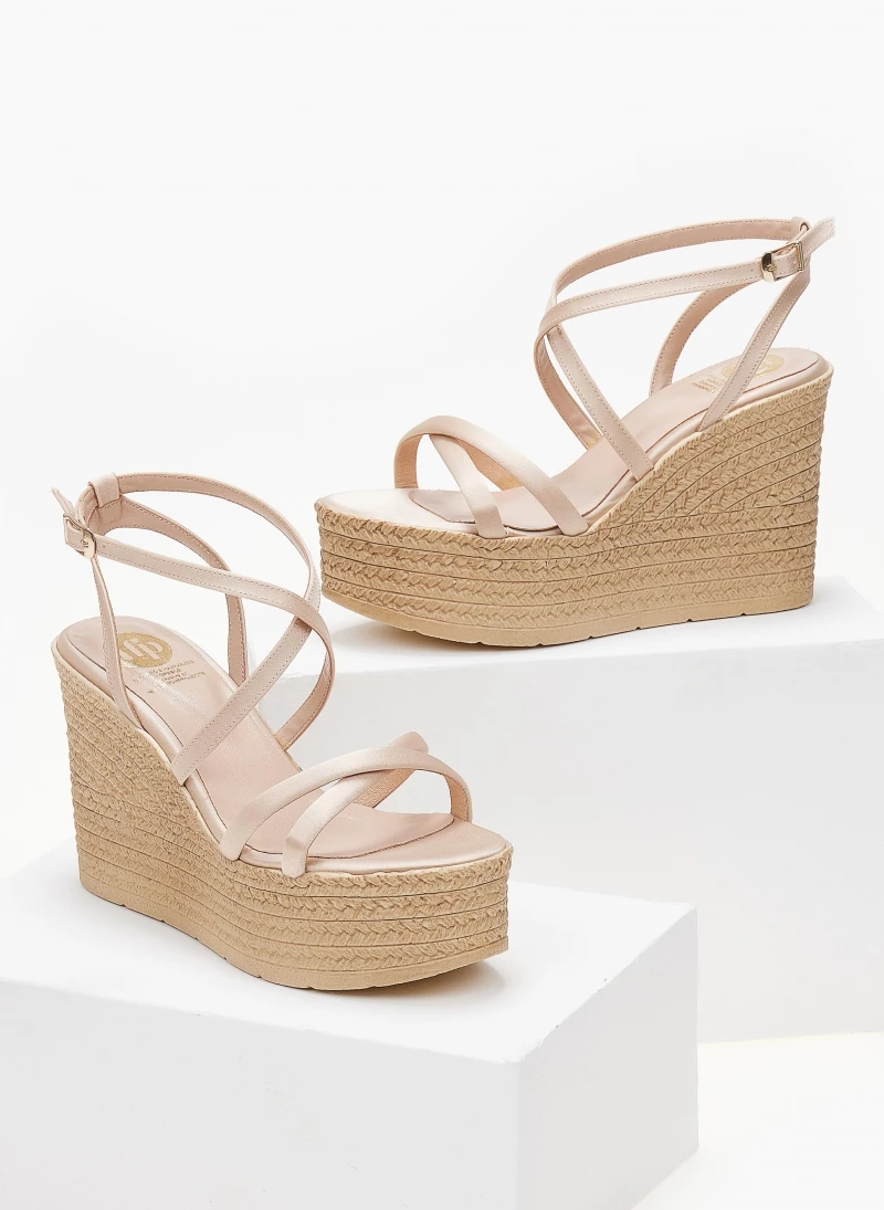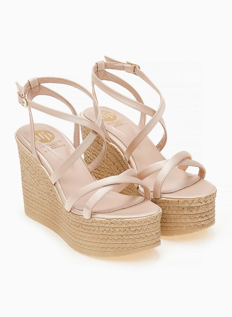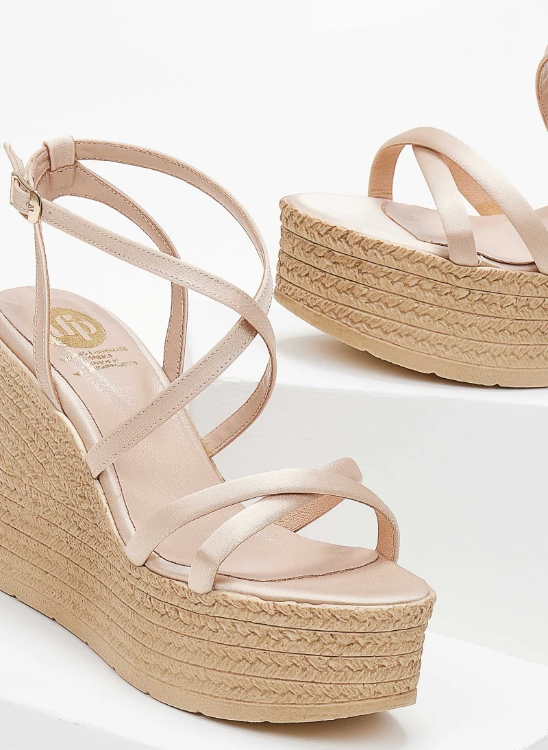 Πλατφόρμες πέδιλα σατέν με χιαστί λουράκια.Δένουν στο πλάι.Ελληνικής κατασκευής.