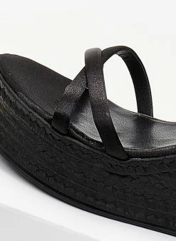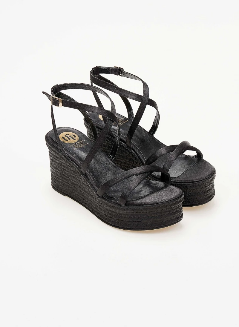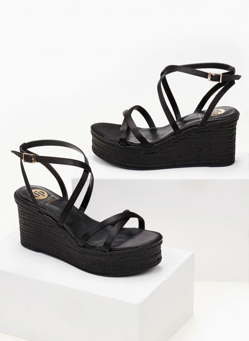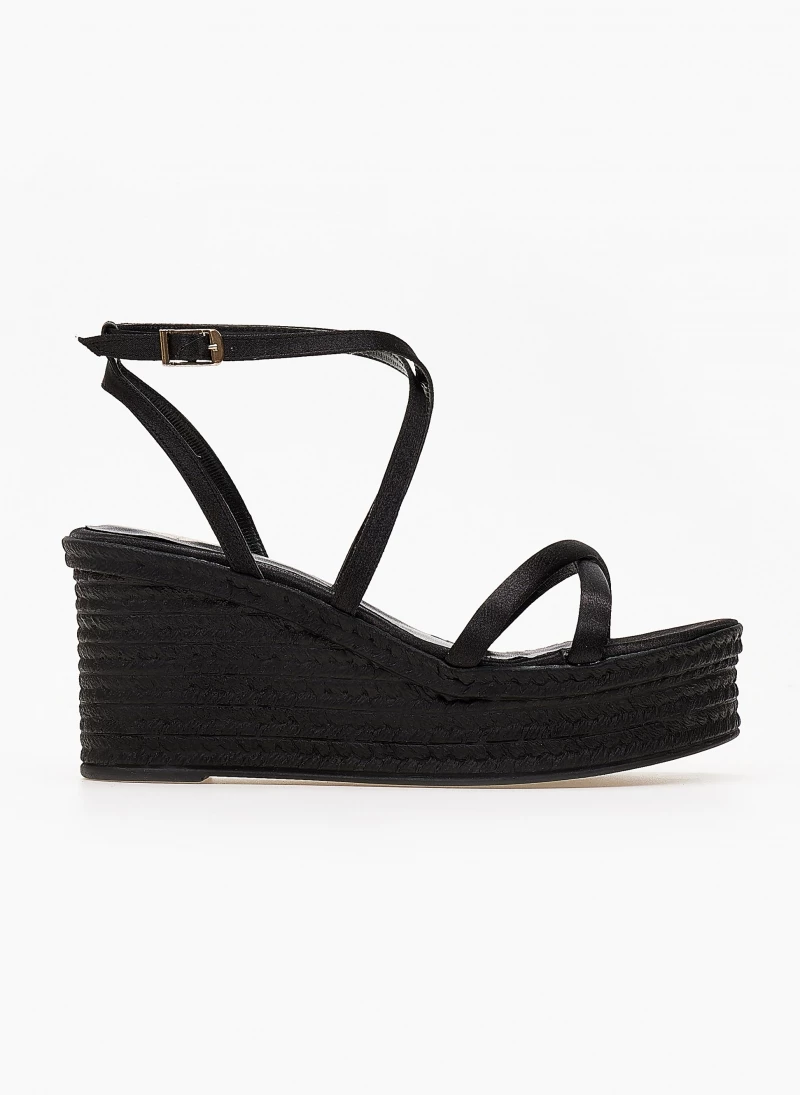 Προώθηση 🌟 Best Pirce 🧨 The Fashion Project Πλατφόρμες σατέν με ψάθα στη σόλα – Μαύρο ⌛ ✨