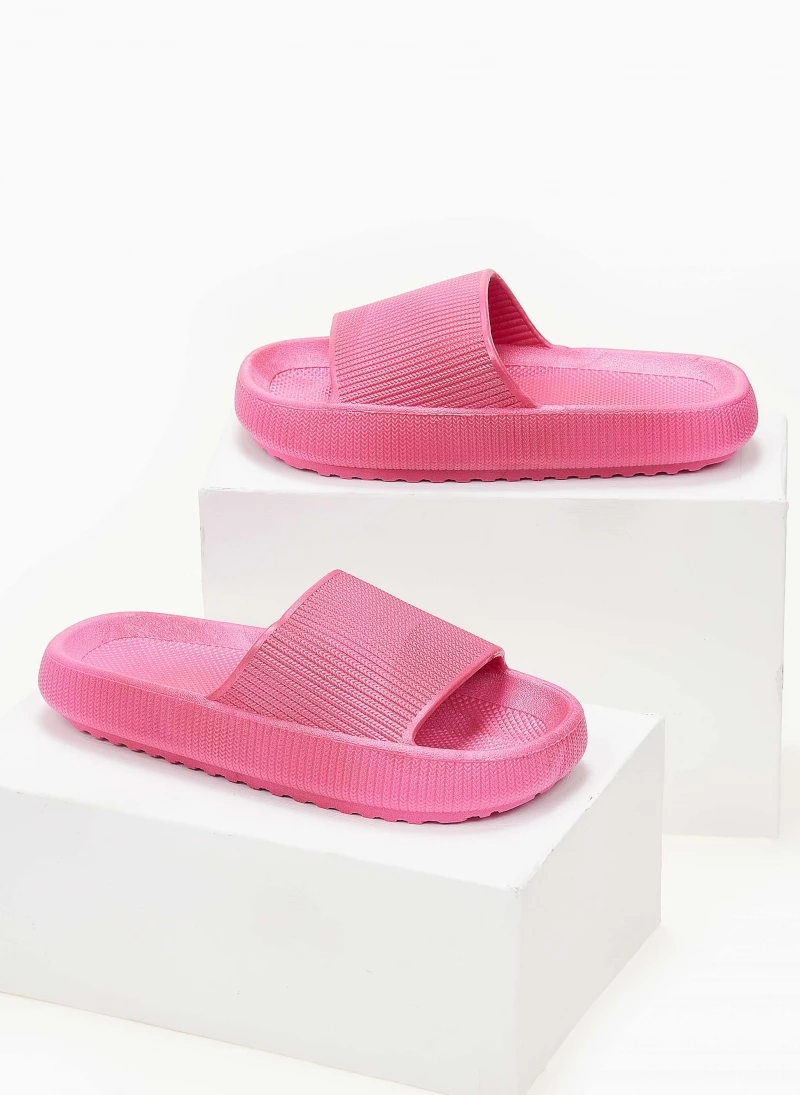 Slides με φαρδιά φάσα και μικρό άνοιγμα στο πλάι. Μαλακή σόλα. Ανατομικό σχήμα στον πάτο.
