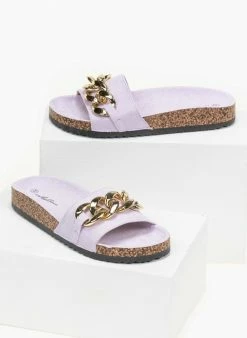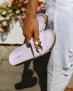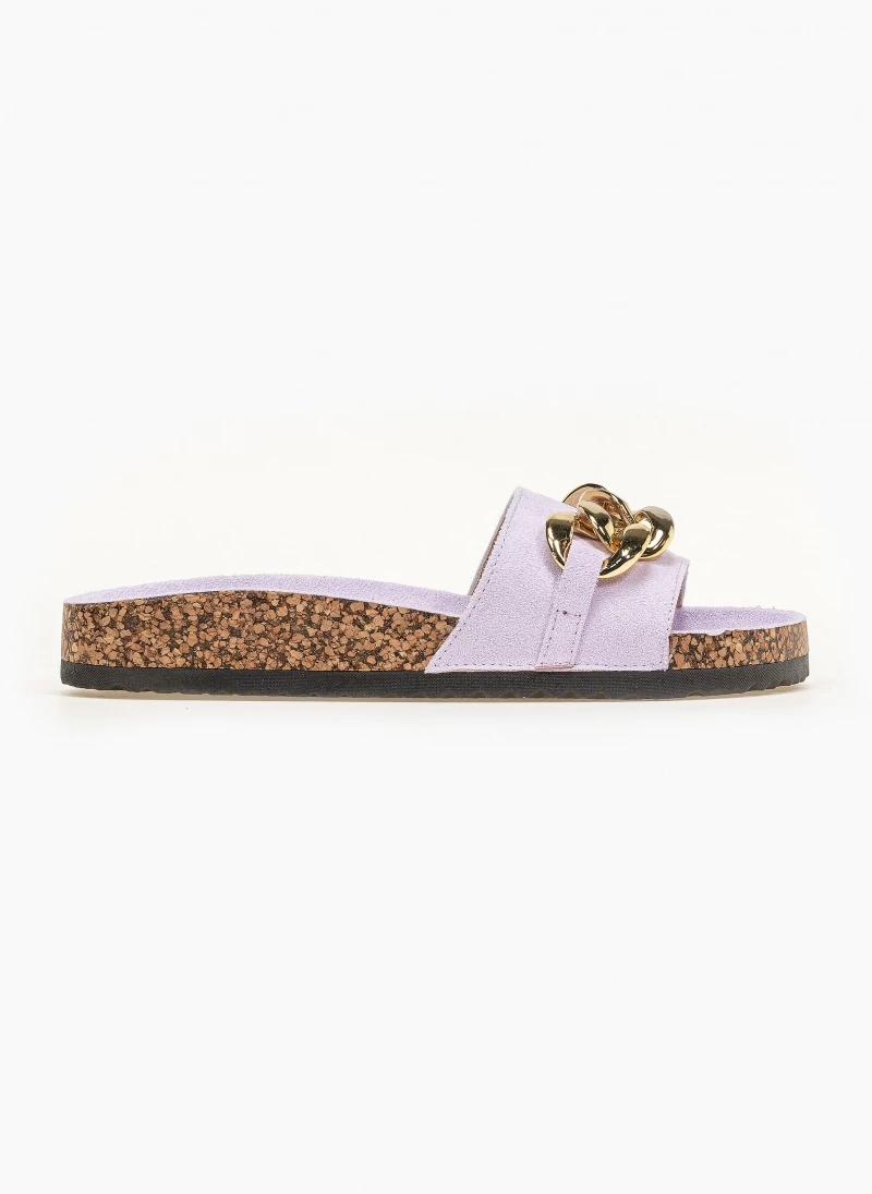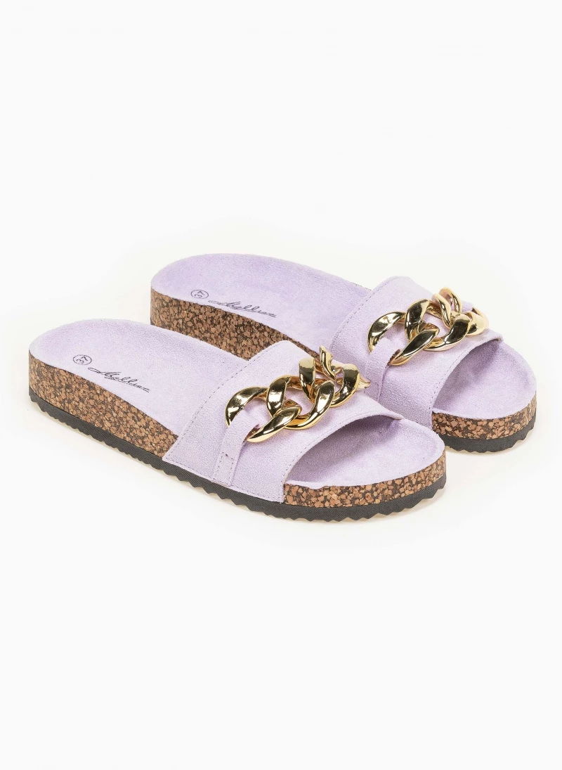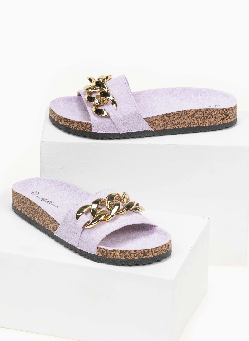 Suede slides με ανατομικό πάτο.Έχουν φαρδιά φάσα με αλυσίδα.