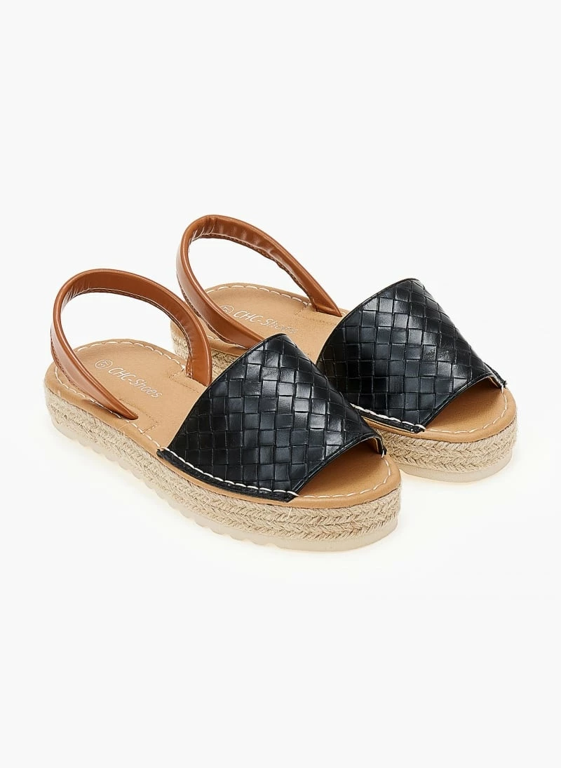 Εσπαντρίγιες με pattern πλεκτό. Έχουν σχοίνινη σόλα. Είναι ανοιχτές με λουράκι στο πίσω μέρος.