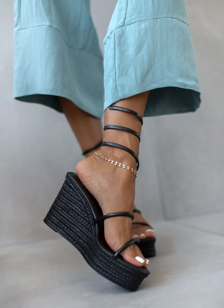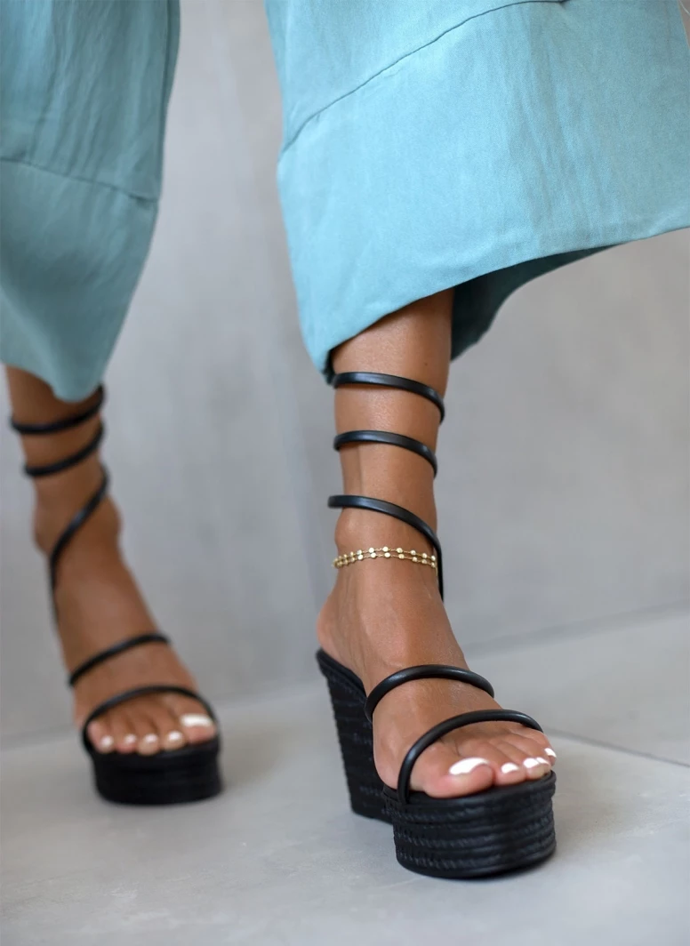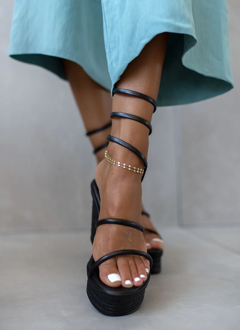 Πλατφόρμες δερμάτινες ESTIL με έλασμα στη γάμπα. Δερμάτινος πάτος με ενίσχυση. Ελληνικής κατασκευής.