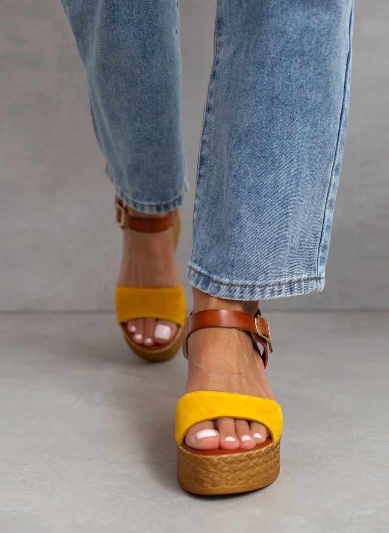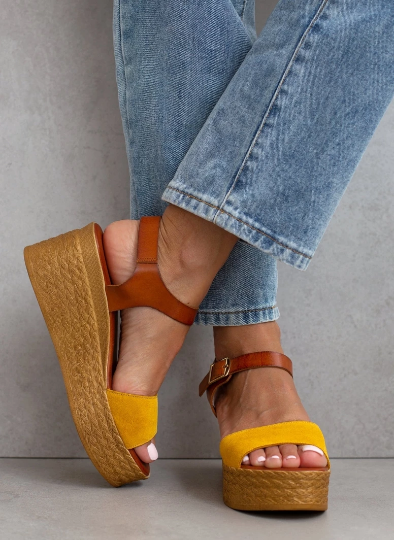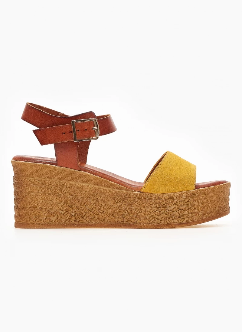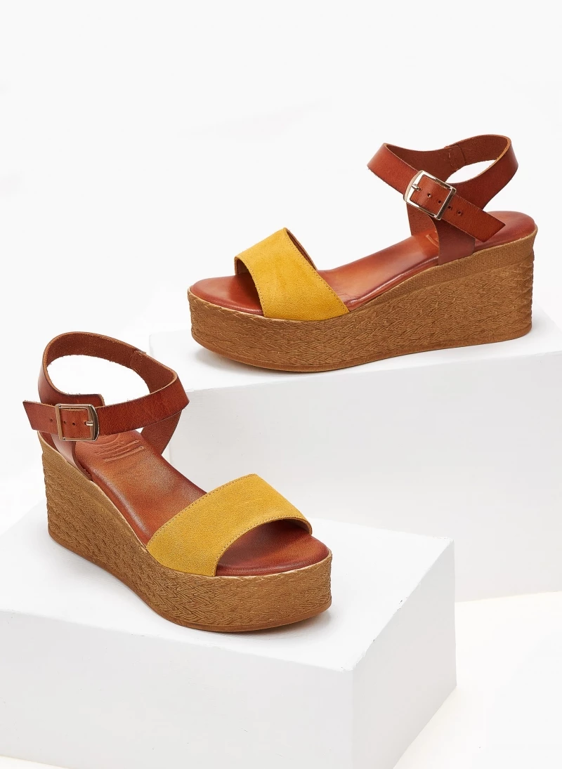 Πέδιλα πλατφόρμες TFP με φάσα καστόρινη. Δένουν στο ύψος του αστραγάλου. Δερμάτινος πάτος με ενίσχυση. Ελληνικής κατασκευής.