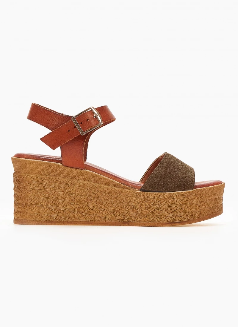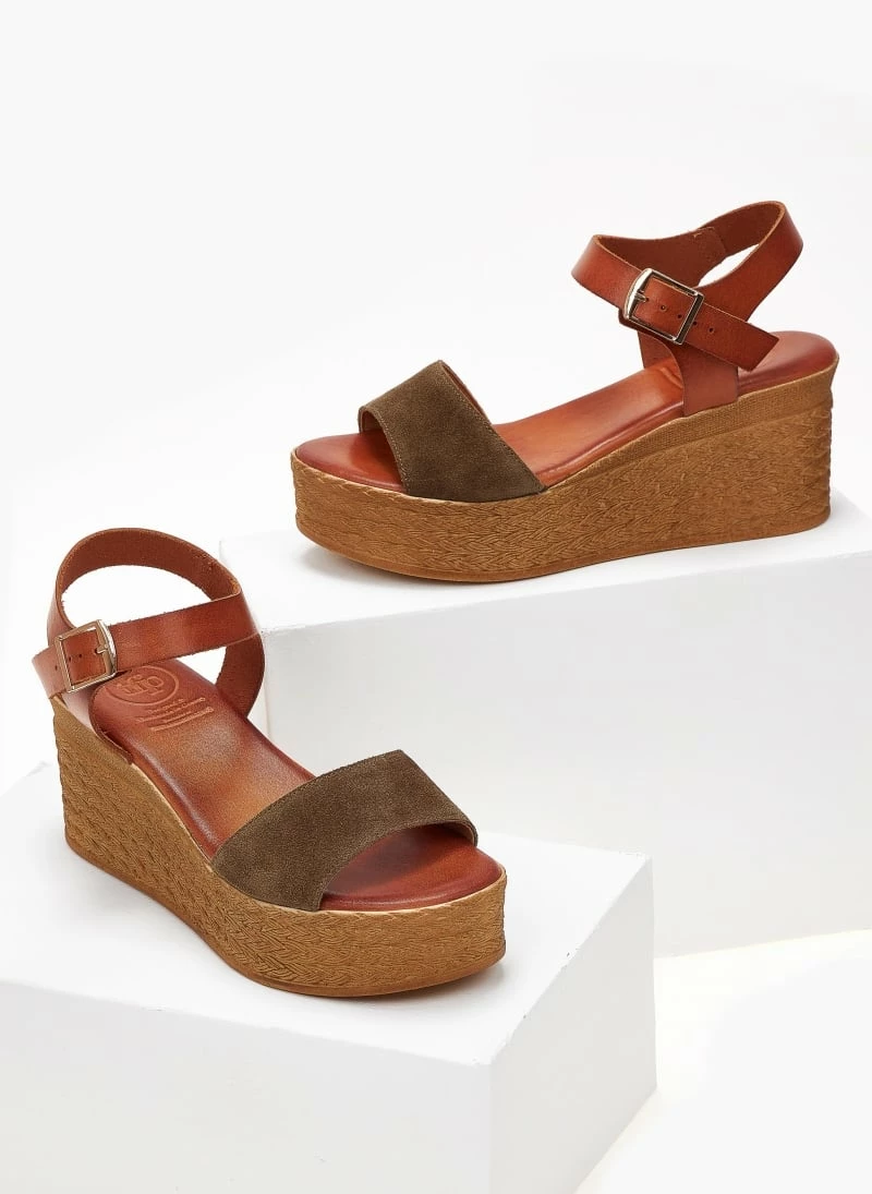 Πέδιλα πλατφόρμες TFP με φάσα καστόρινη. Δένουν στο ύψος του αστραγάλου. Δερμάτινος πάτος με ενίσχυση. Ελληνικής κατασκευής.