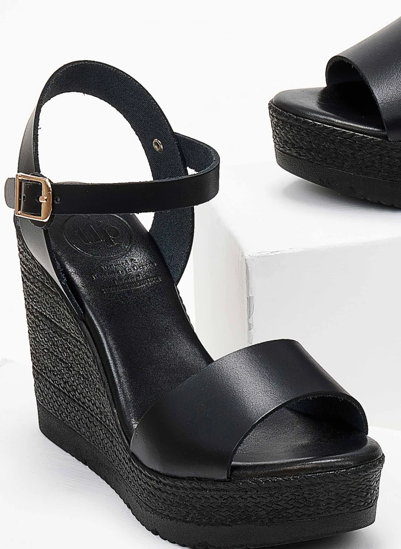 Πλατφόρμες δερμάτινες TFP με ψηλή σόλα. Δένουν με λουράκι στο πλάι. Διαθέτουν δερμάτινο μαλακό πατάκι. Ελληνικής κατασκευής.