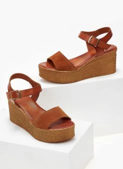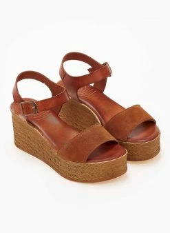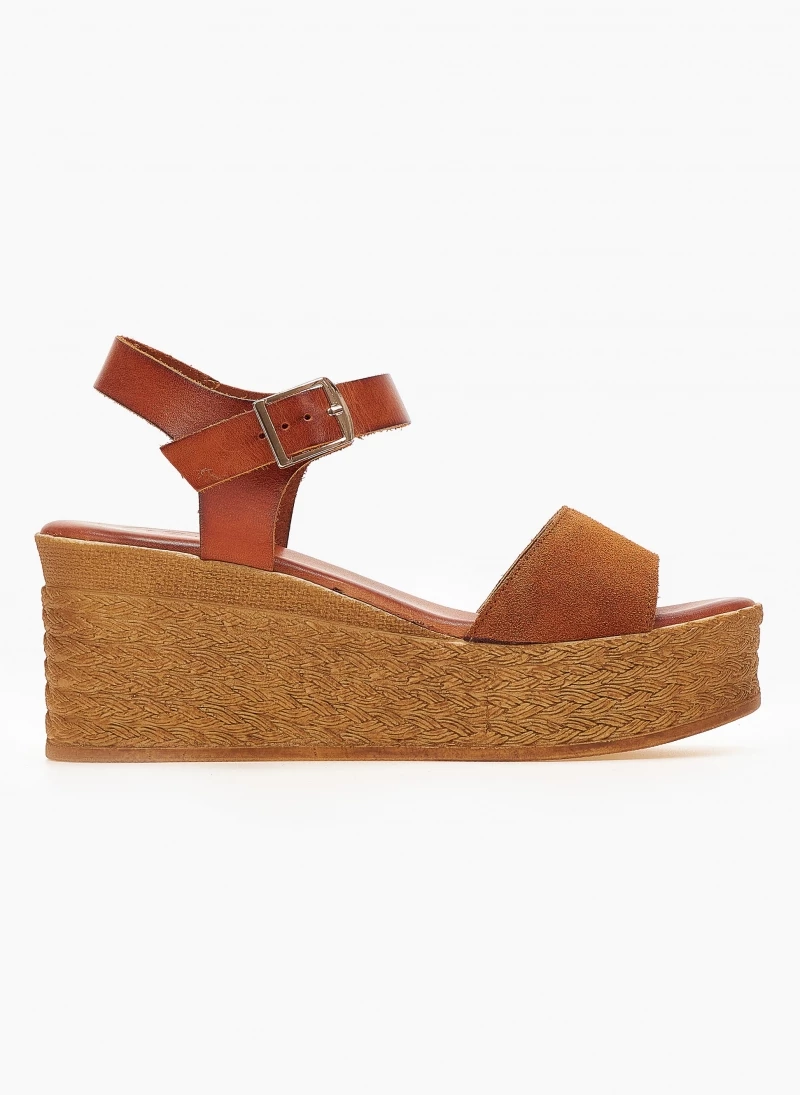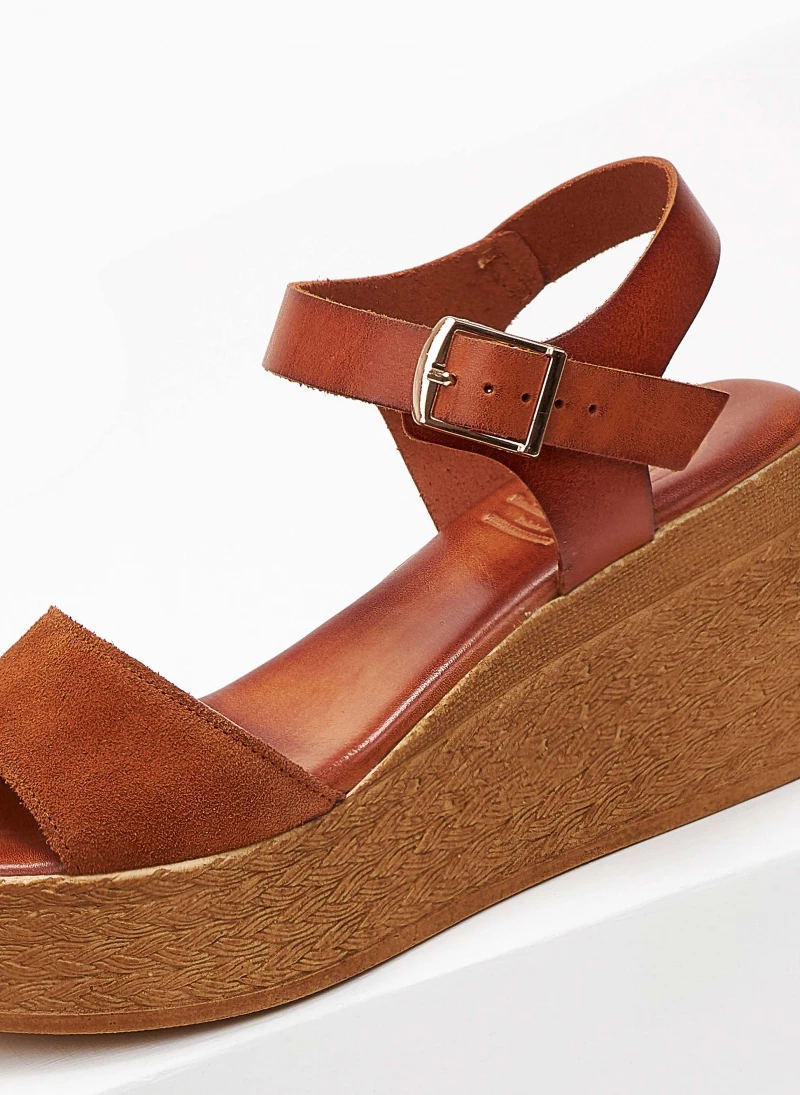 Πέδιλα πλατφόρμες TFP με φάσα καστόρινη. Δένουν στο ύψος του αστραγάλου. Δερμάτινος πάτος με ενίσχυση. Ελληνικής κατασκευής.
